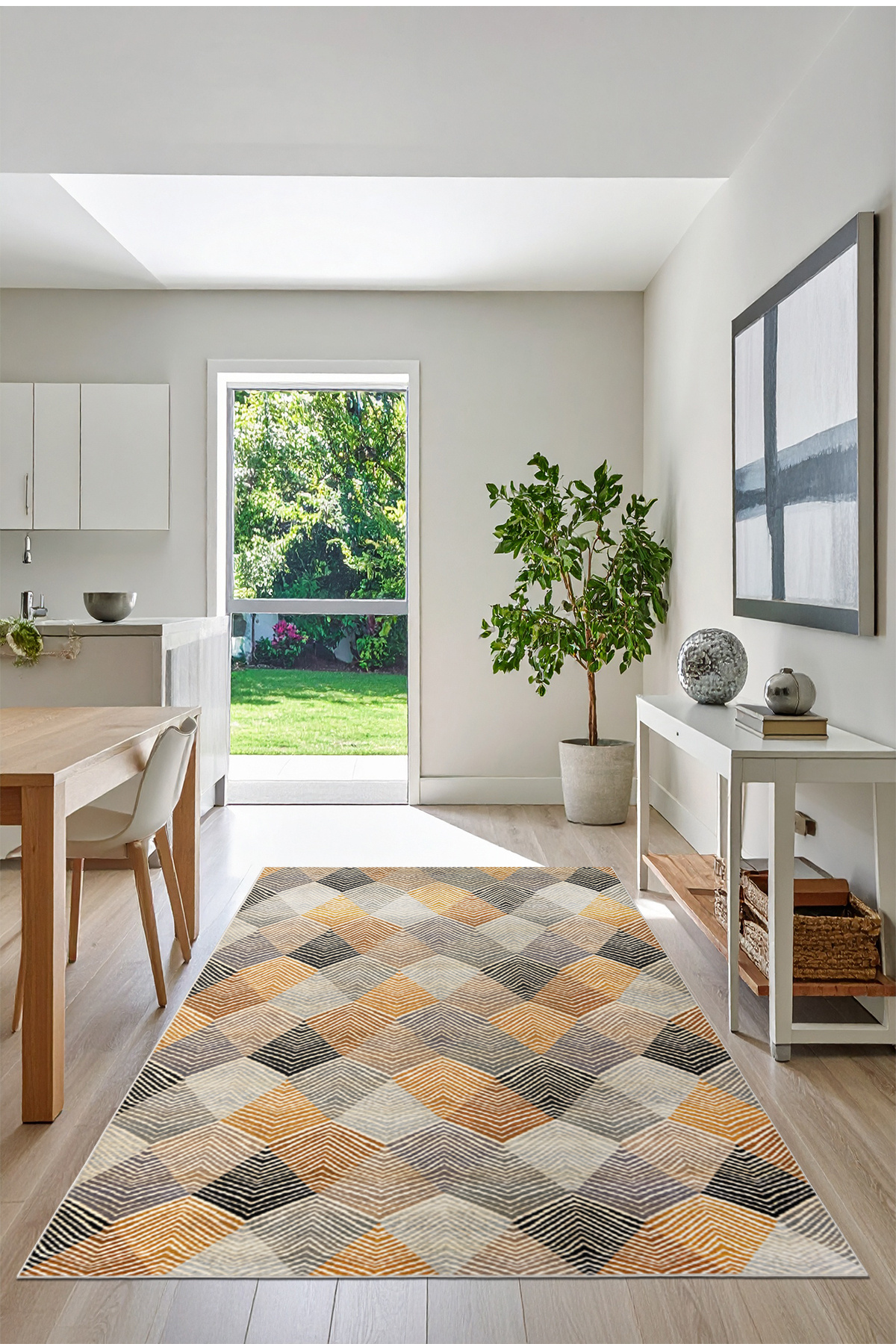Dekoratif Özel Tasarım Yıkanabilir İnce Kaymaz Tabanlı Modern Sarı Gri Salon Mutfak Halısı Yolluk Dekoratif Özel Tasarım Yıkanabilir İnce Kaymaz Tabanlı Modern Sarı Gri Salon Mutfak Halısı Yolluk FR 160 x 230