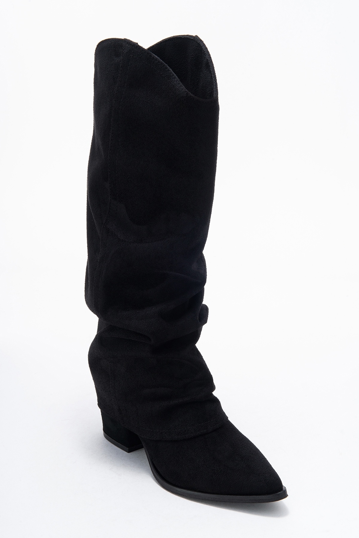 ELARIS Siyah Süet Körüklü Kadın Kalın Topuklu Çizme ELARIS Siyah Süet Körüklü Kadın Kalın Topuklu Çizme 117-1907 40