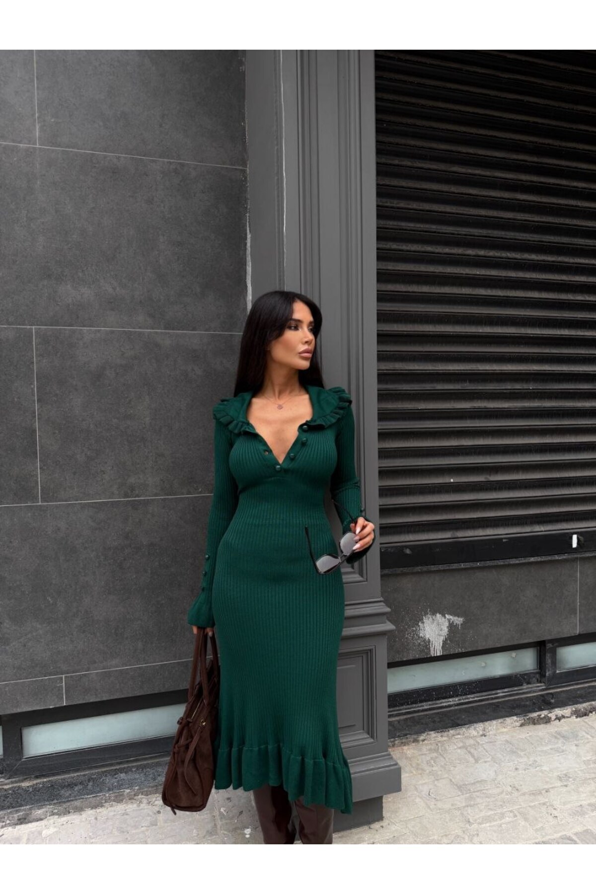 Kadın Bordo Yaka Detaylı Fırfırlı Triko Elbise Kadın Bordo Yaka Detaylı Fırfırlı Triko Elbise EA4545 Standart