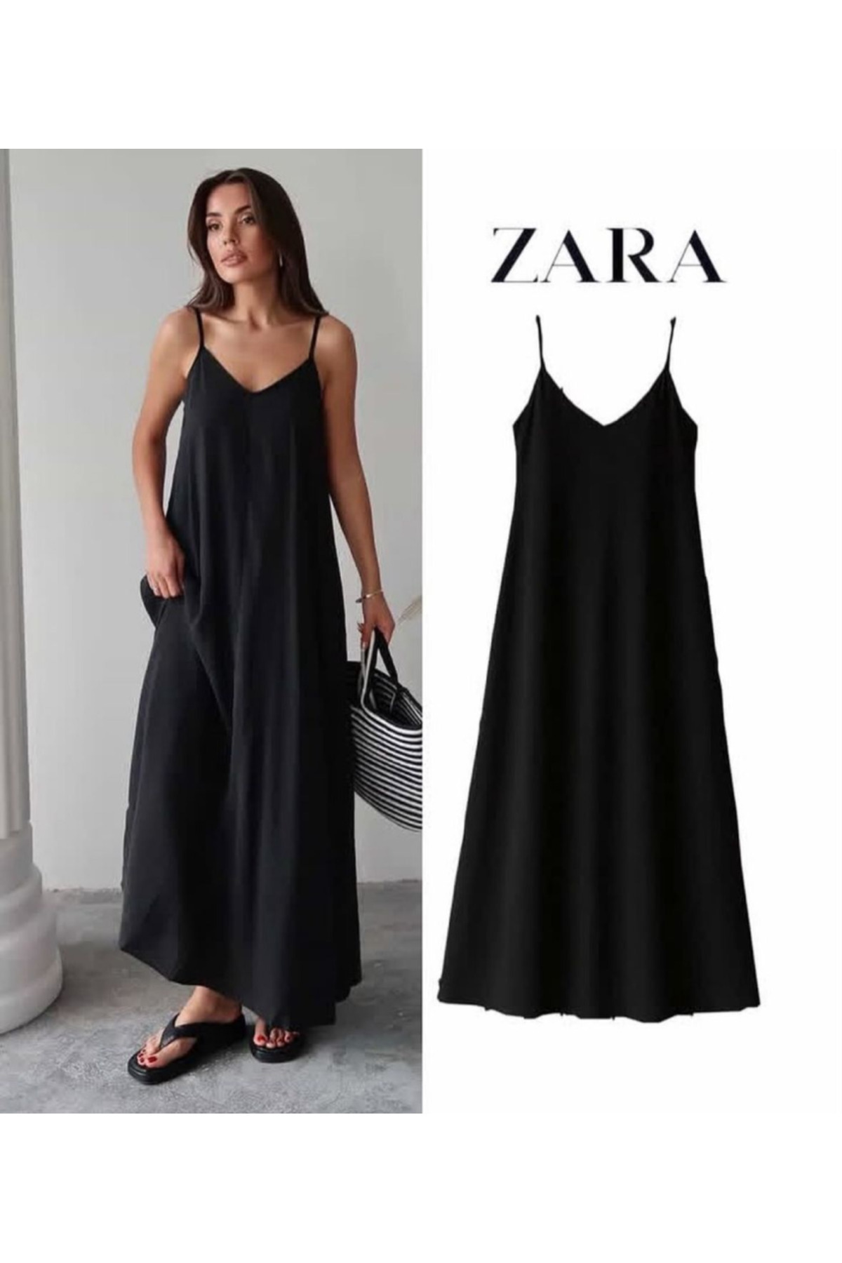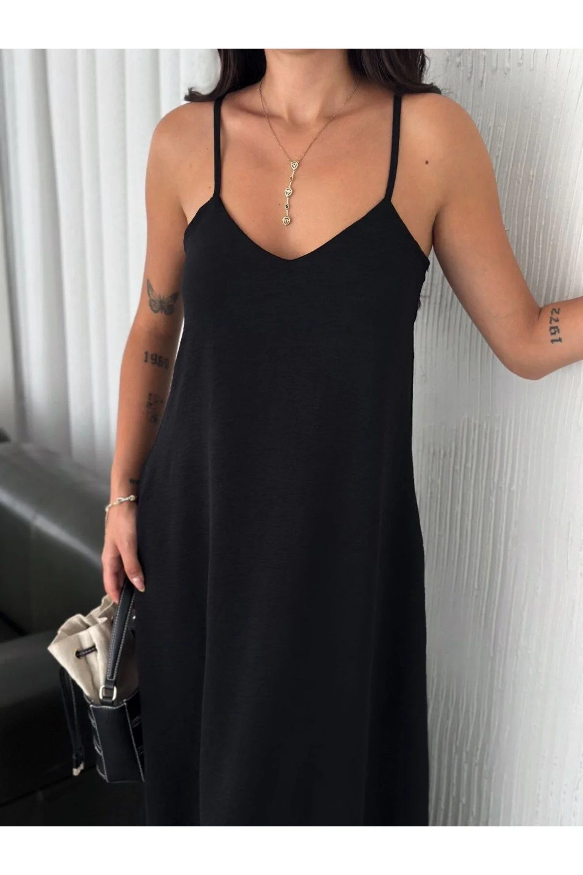 Kadın Siyah V Yaka İp Askılı Sırtı Açık Cepli Salaş Uzun Maxi Boy Ayrobin Yazlık Elbise Kadın Siyah V Yaka İp Askılı Sırtı Açık Cepli Salaş Uzun Maxi Boy Ayrobin Yazlık Elbise P8587S2285 XL