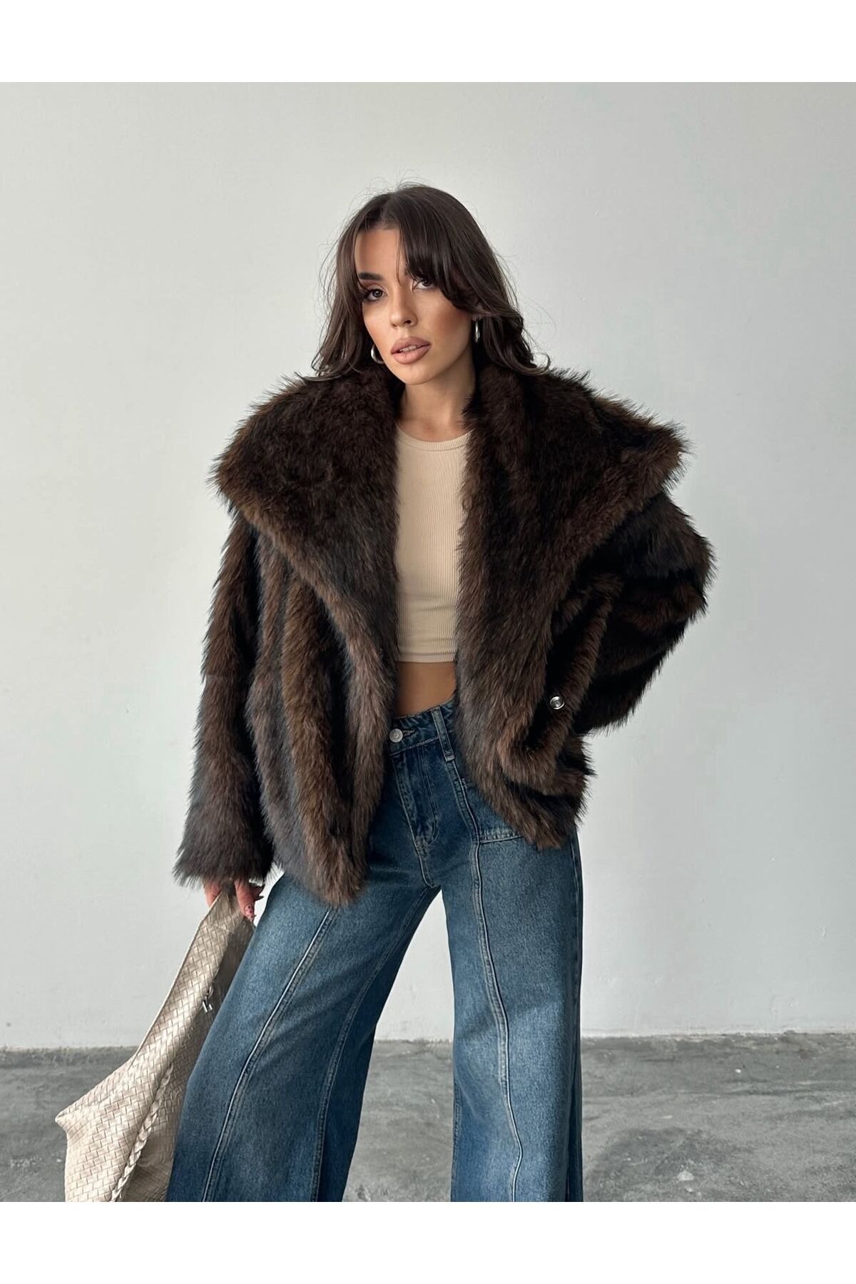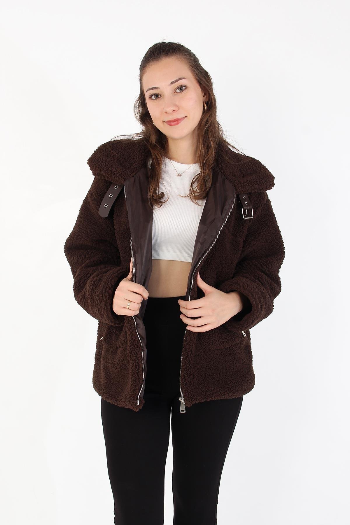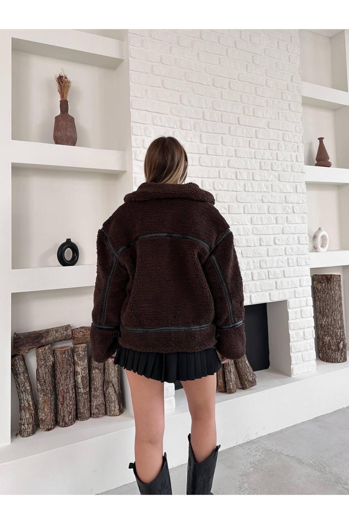 Siyah Deri Şeritli Kahverengi Peluş Ceket Siyah Deri Şeritli Kahverengi Peluş Ceket kokakahvedoly L