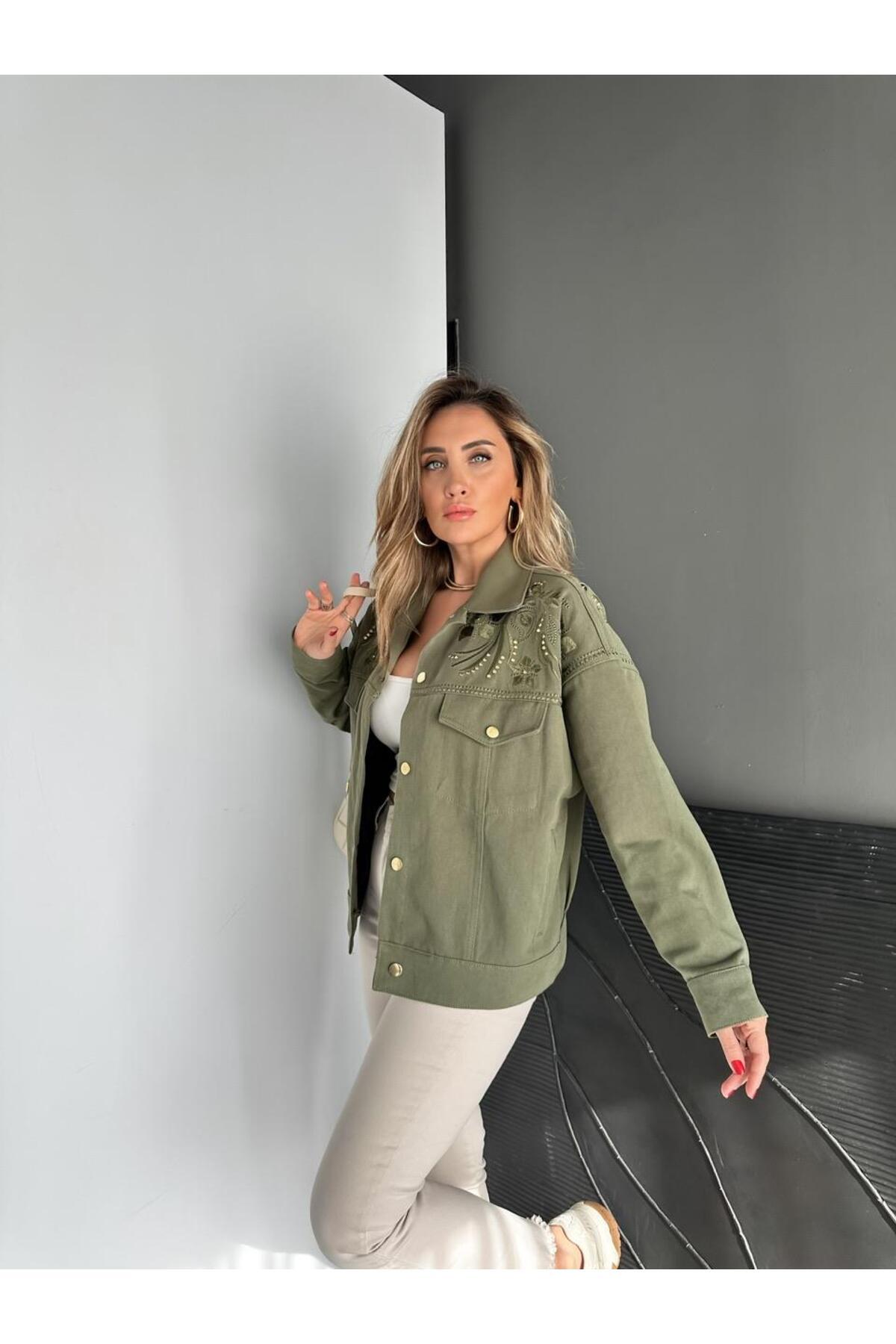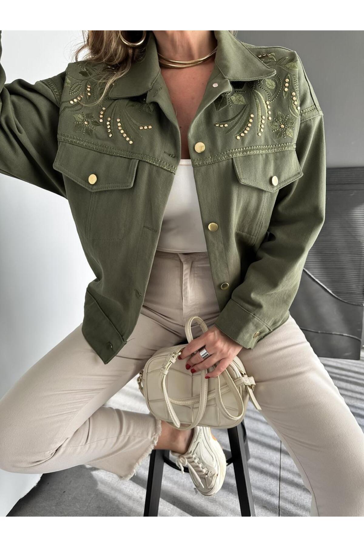 Haki Nakışlı Zımbalı Kot Ceket Haki Nakışlı Zımbalı Kot Ceket 2809 L