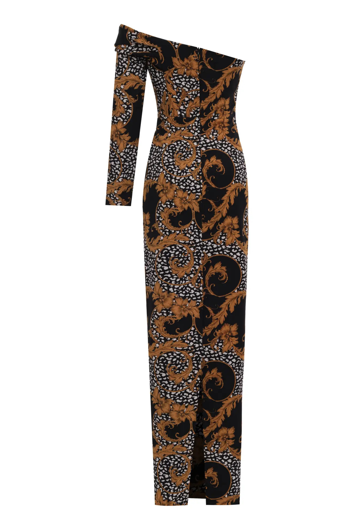 Desenli Krep Tek Kol Uzun Elbise Desenli Krep Tek Kol Uzun Elbise 965944 40