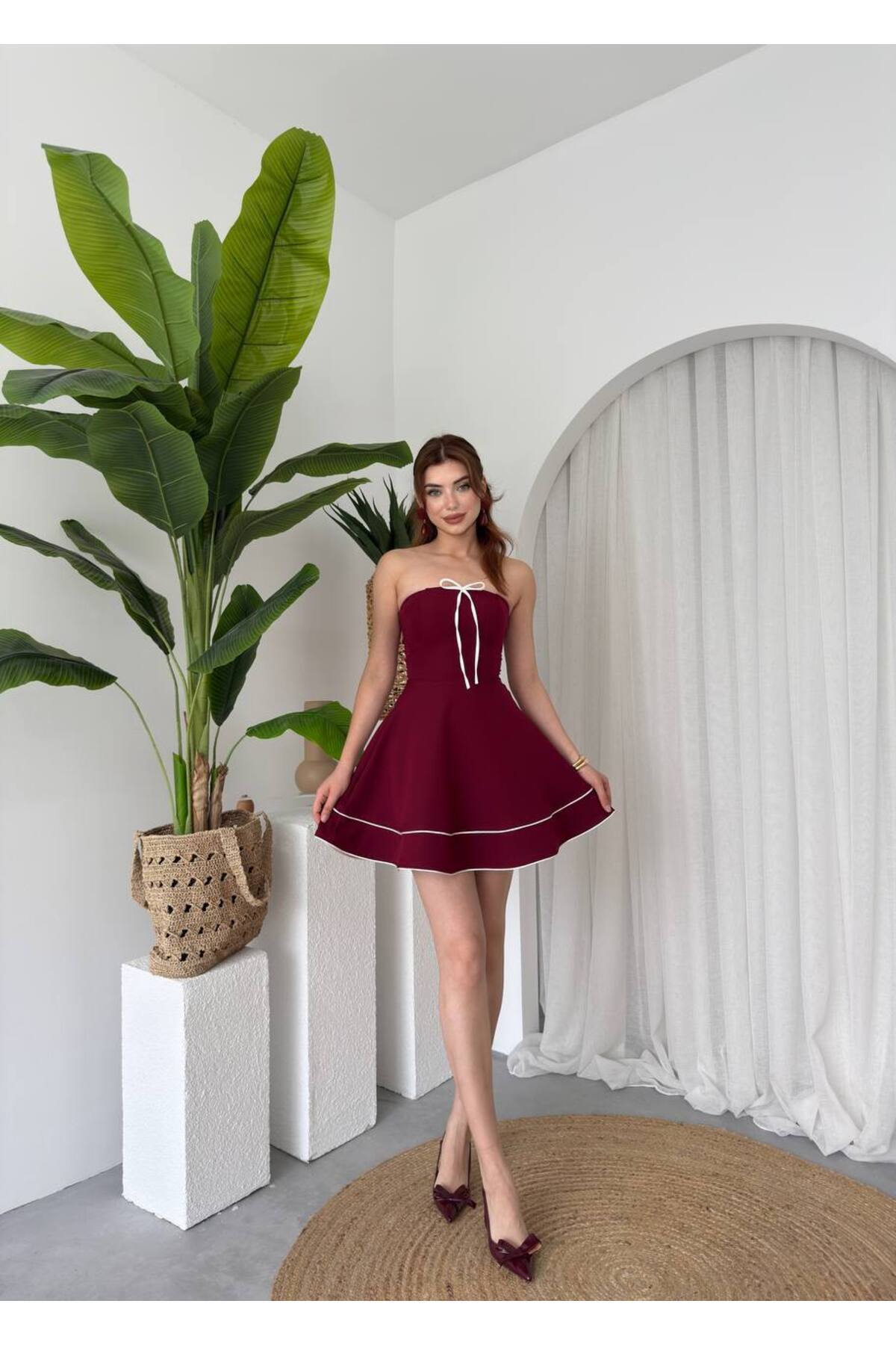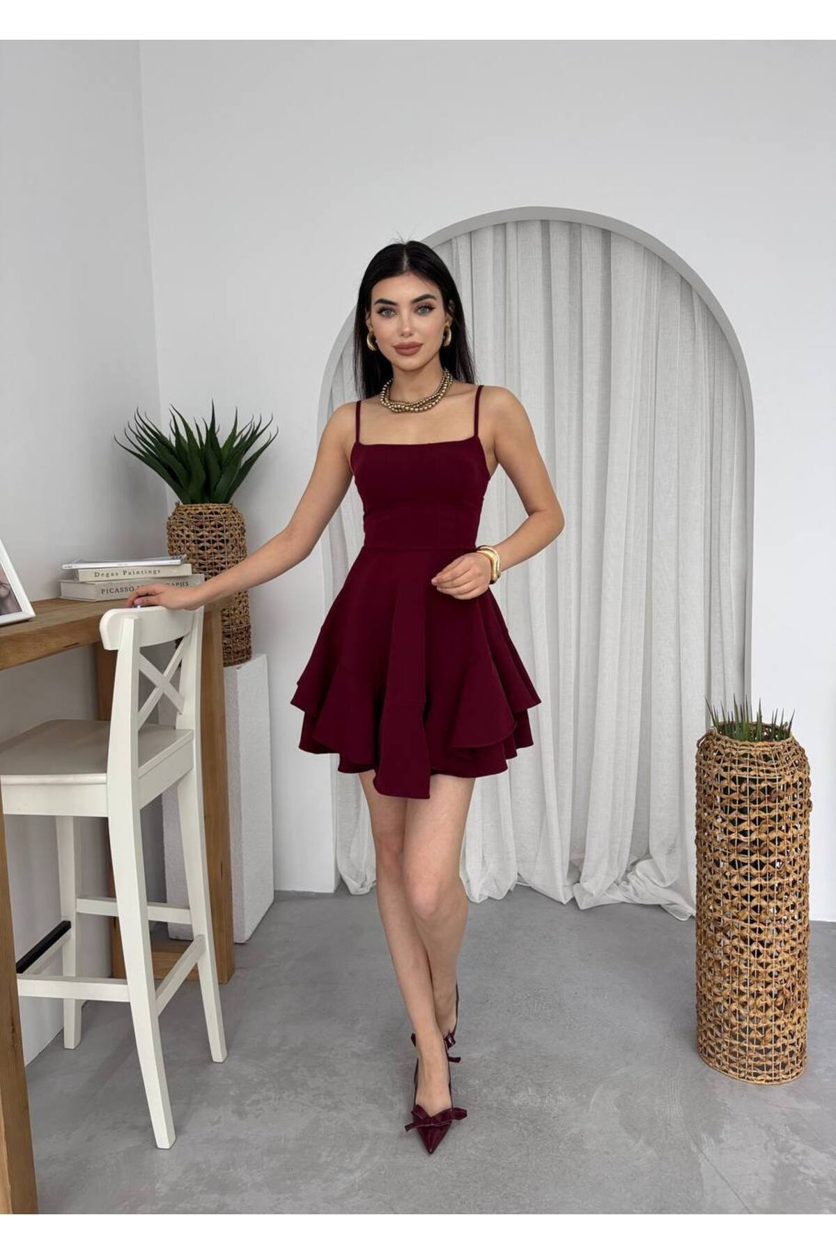 İp Askılı Bel Kemer Bağlamalı Mini Boy Abiye Bordo 0802004 İp Askılı Bel Kemer Bağlamalı Mini Boy Abiye Bordo 0802004 42