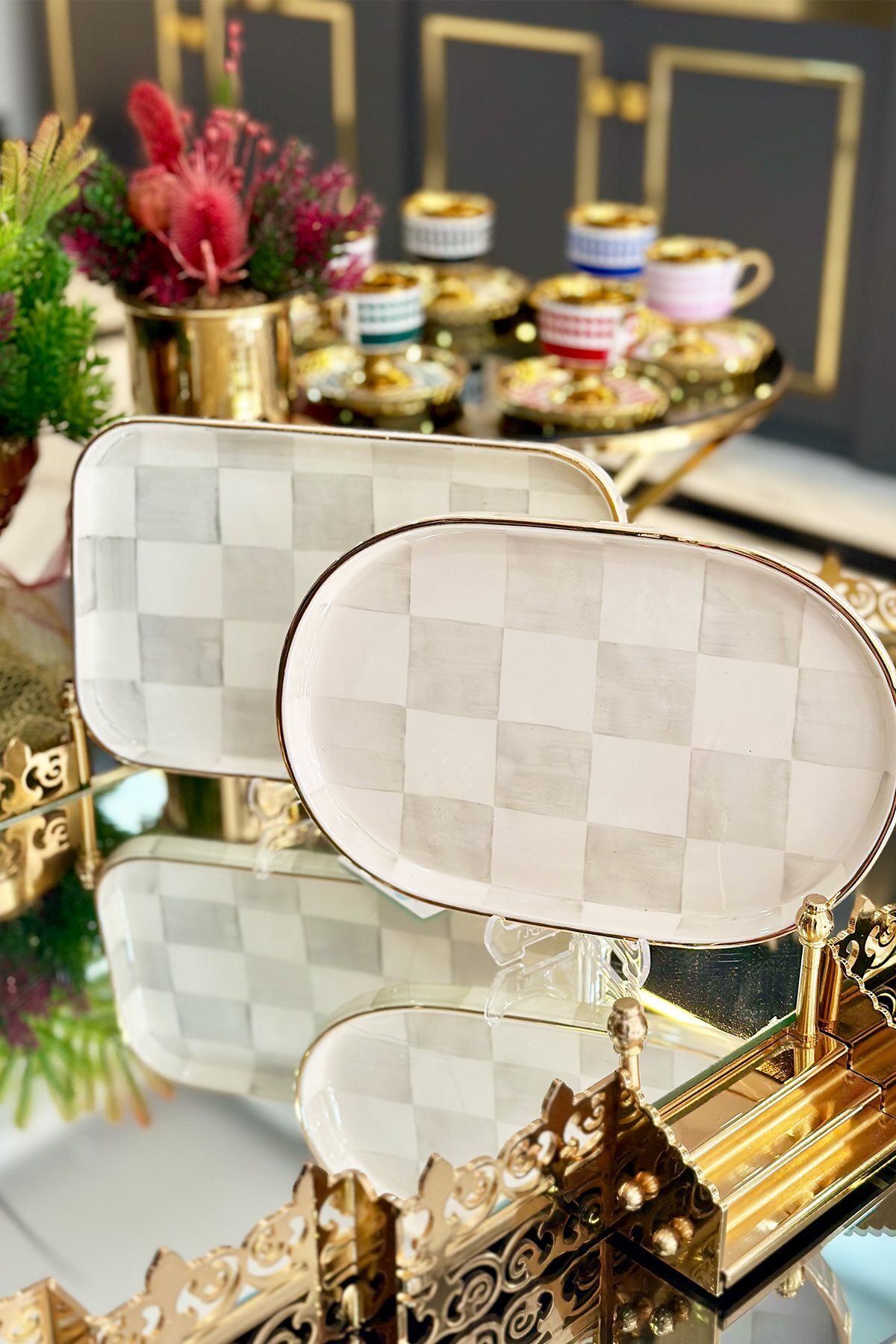 Damalı Gri Dikdörtgen Sunum Tepsi Damalı Gri Dikdörtgen Sunum Tepsi ART0437-1 تک سایز