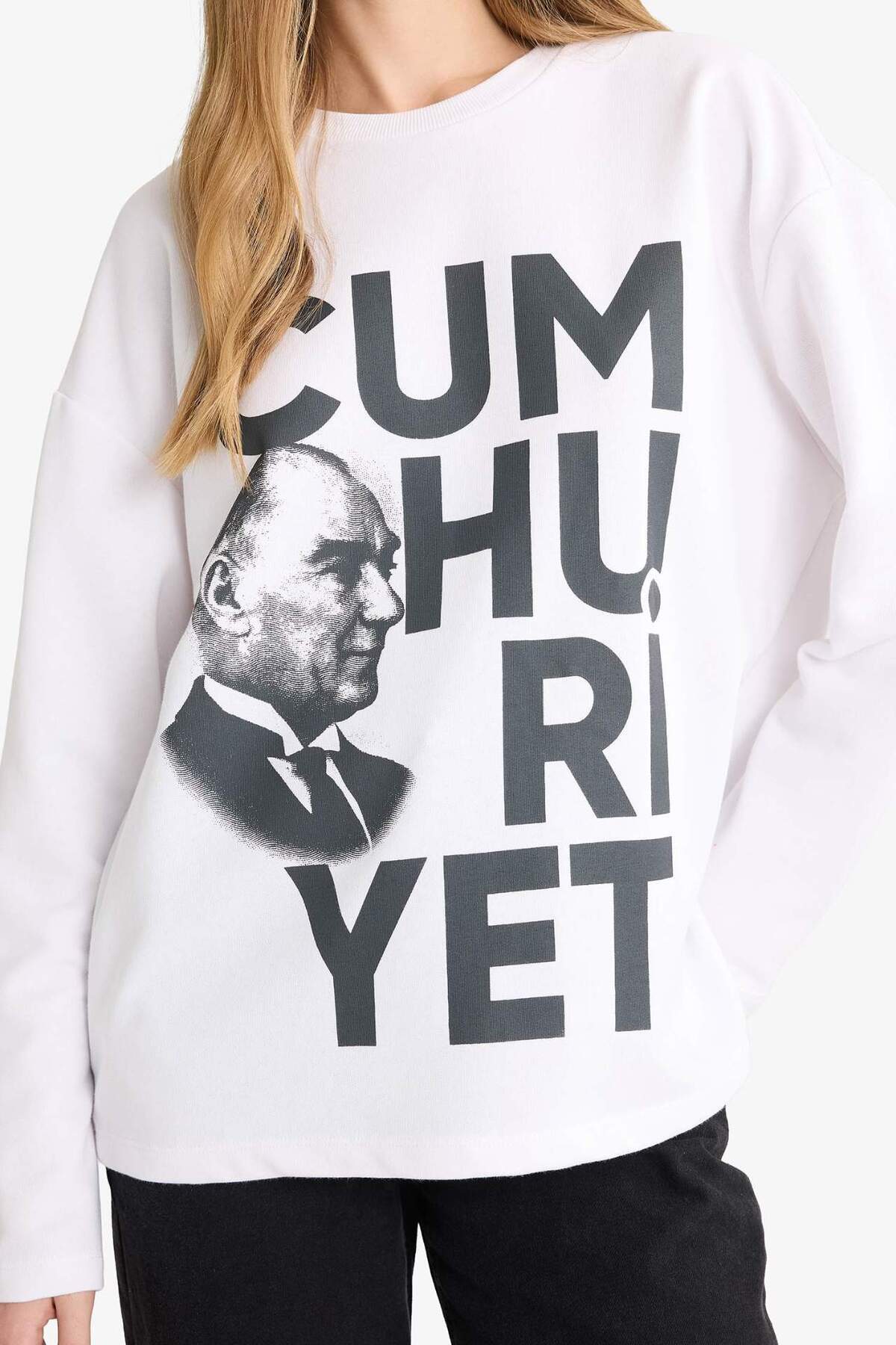 Coool Oversize Geniş Kalıp Bisiklet Yaka Atatürk Baskılı Kalın Uzun Kollu Tişört G6279AX25WN Coool Oversize Geniş Kalıp Bisiklet Yaka Atatürk Baskılı Kalın Uzun Kollu Tişört G6279AX25WN L