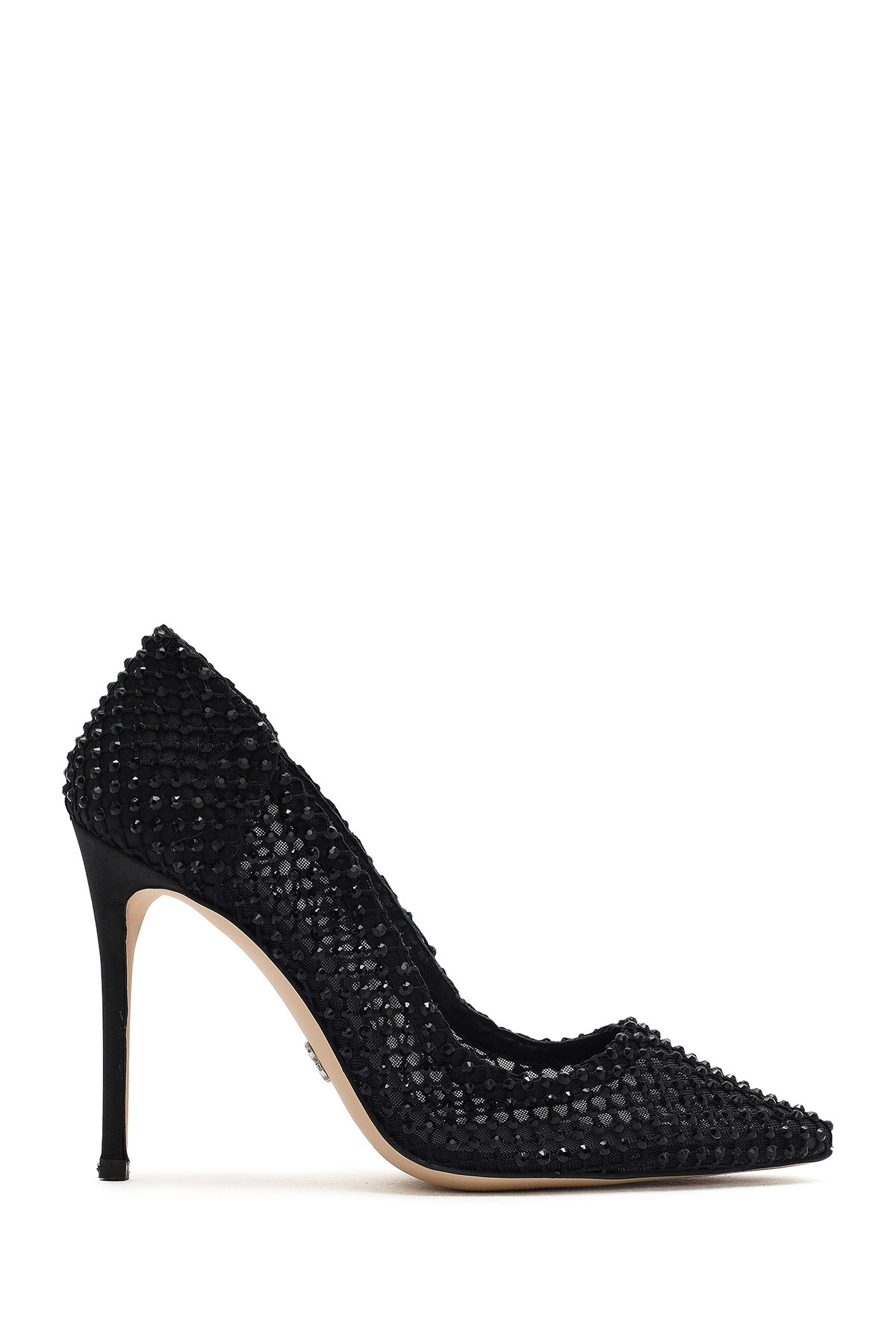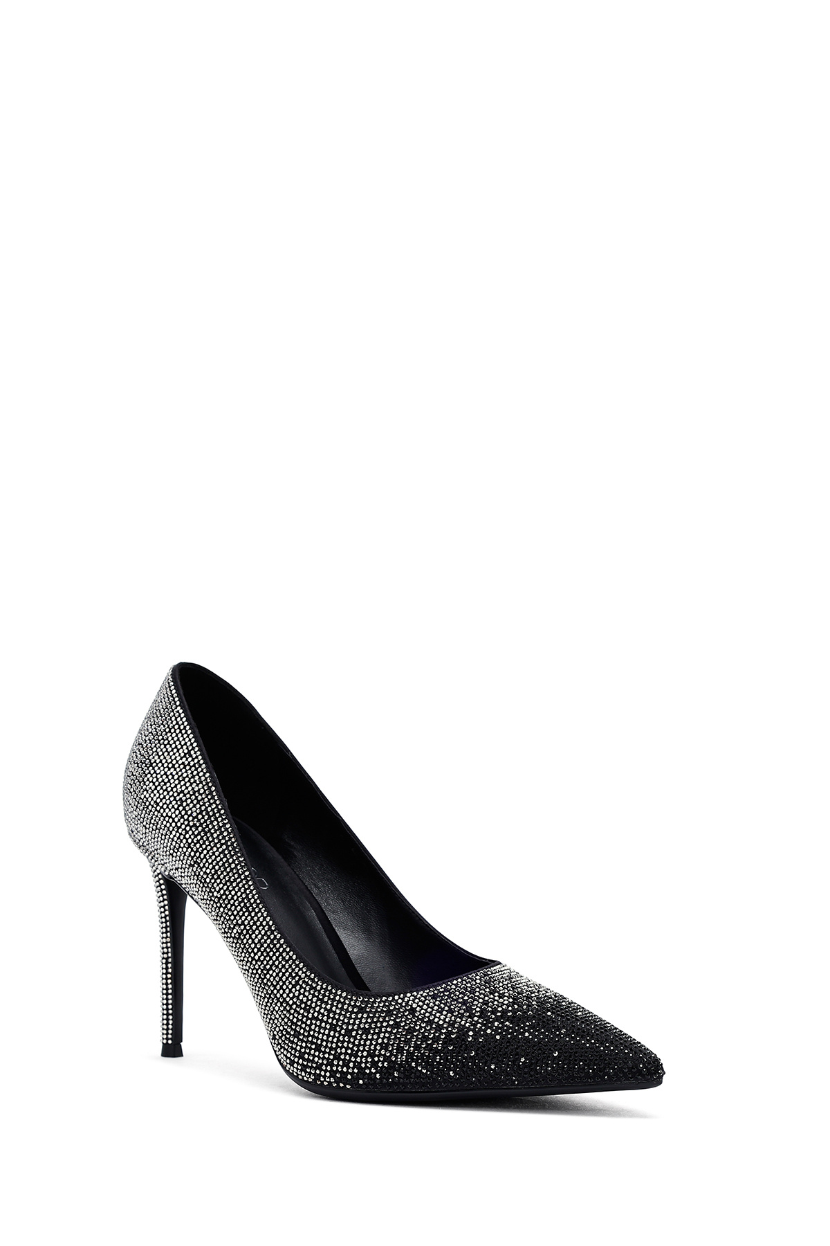Kadın Siyah Taşlı İnce Topuklu Ayakkabı, Deri Stiletto 25WFD4910TS Kadın Siyah Taşlı İnce Topuklu Ayakkabı, Deri Stiletto 25WFD4910TS 40