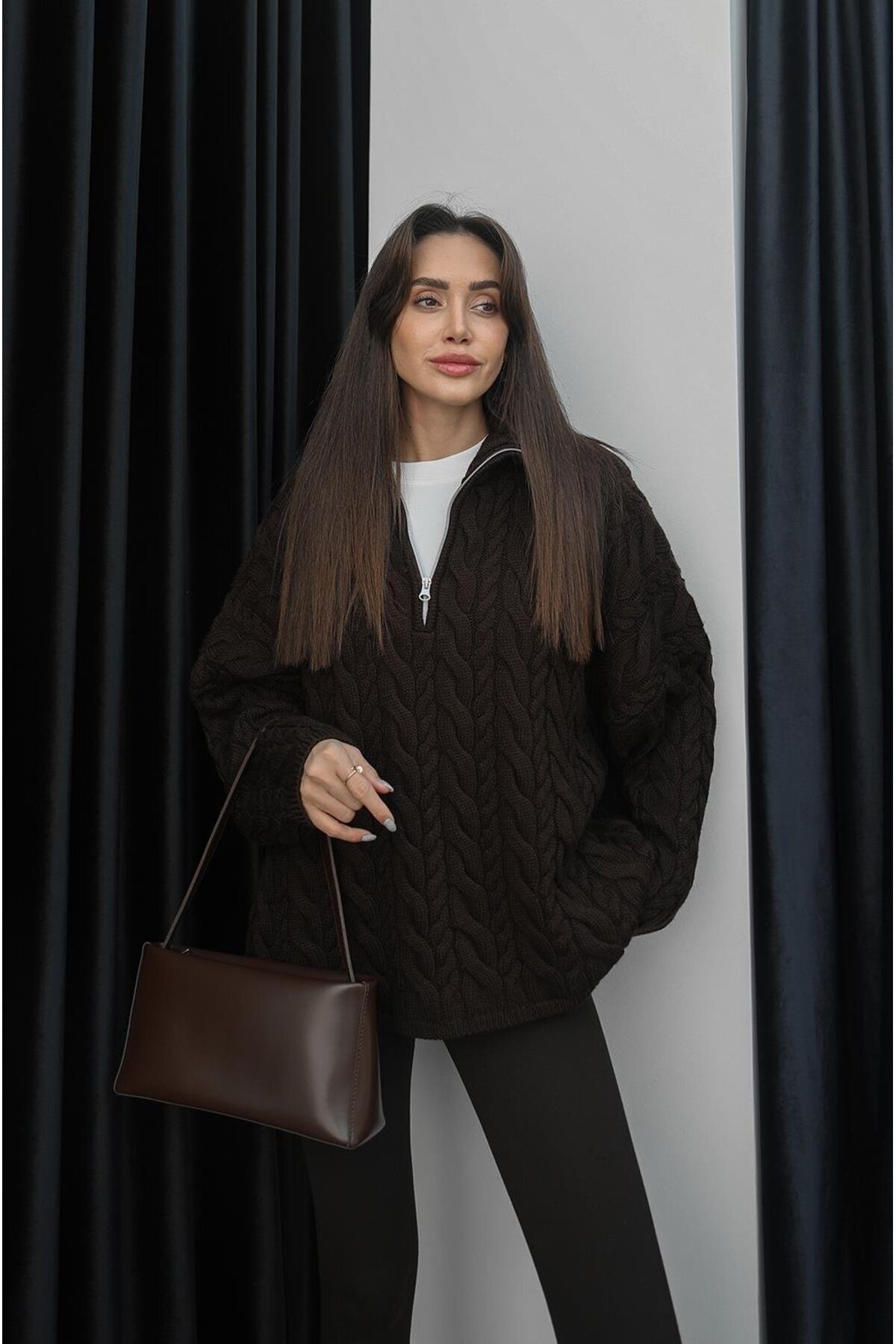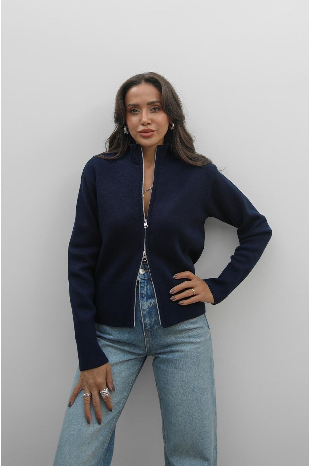 Kahverengi Çift Fermuarlı Hırka Kahverengi Çift Fermuarlı Hırka Hhrk305 Standart
