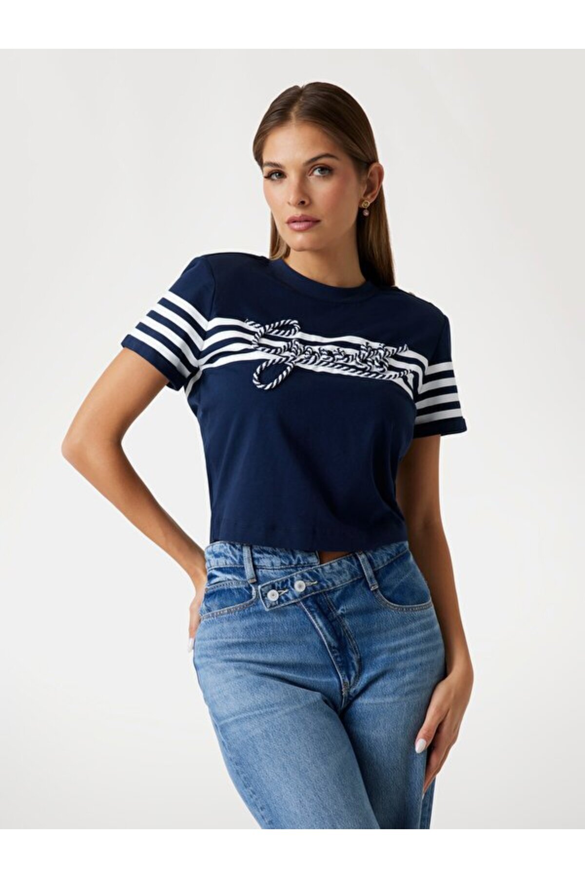 Yuvarlak Yaka Baskılı Mavi Kadın T-Shirt Pearls Kadın Regular Fit T-Shirt Yuvarlak Yaka Baskılı Mavi Kadın T-Shirt Pearls Kadın Regular Fit T-Shirt 5003302007 L