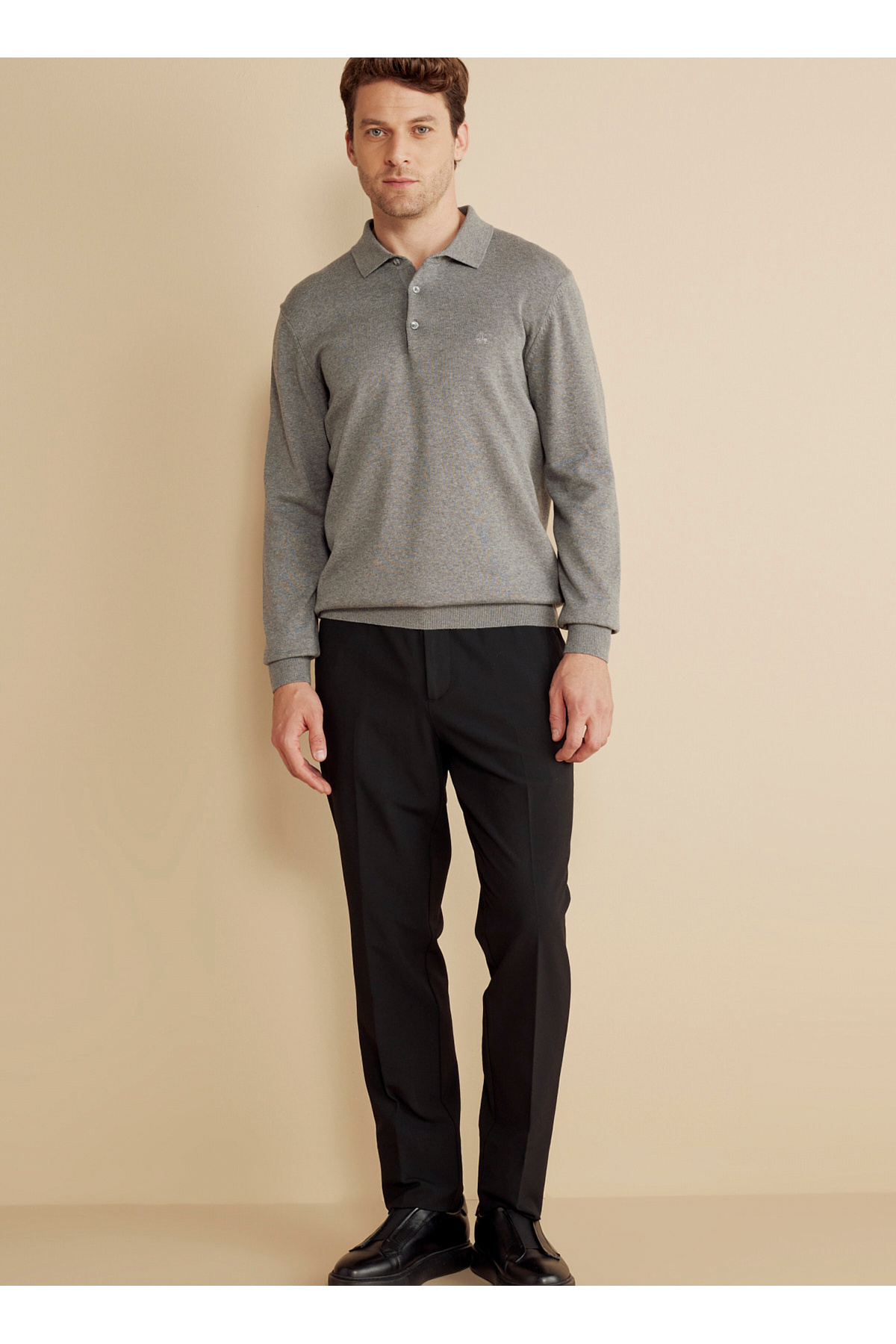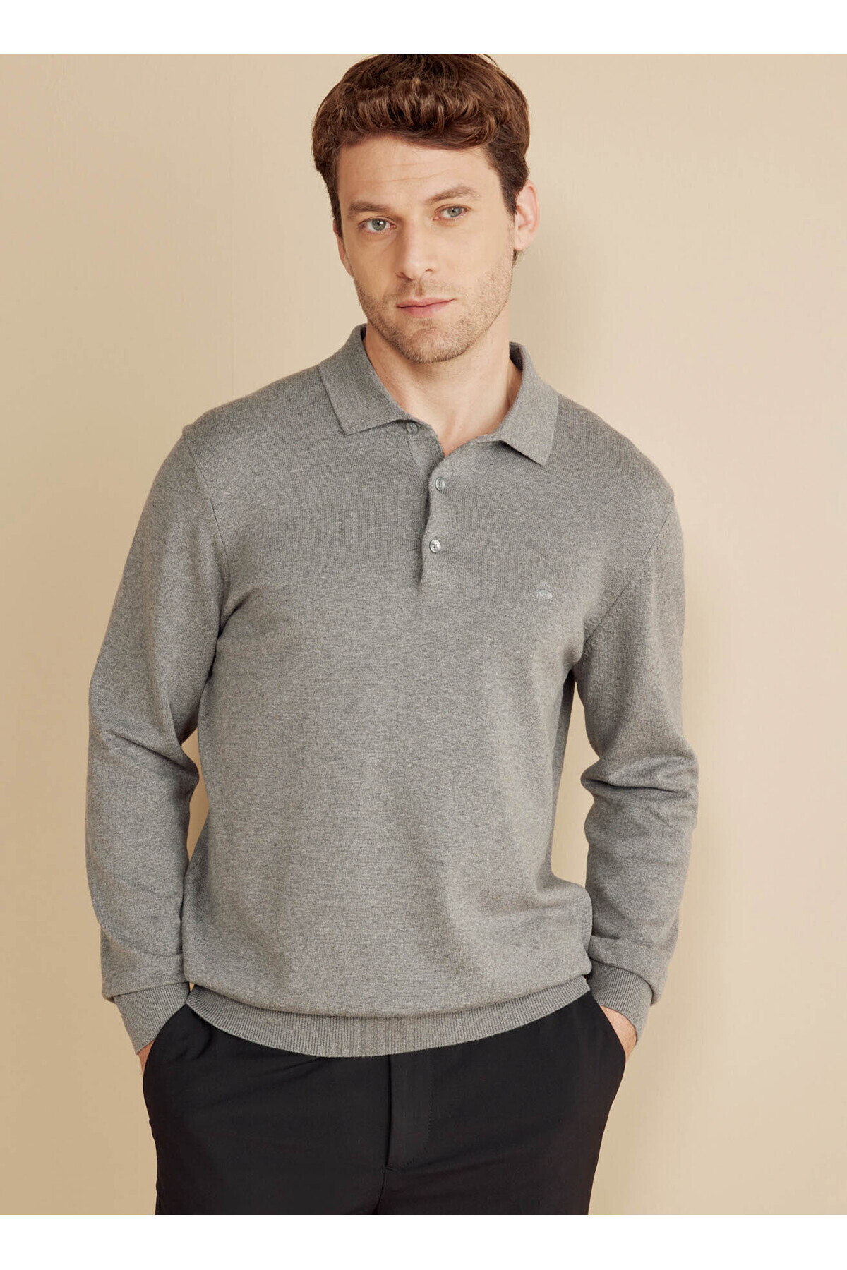 Polo Yaka Standart Gri Melanj Erkek Kazak BBFW25MKL003 Polo Yaka Standart Gri Melanj Erkek Kazak BBFW25MKL003 5003317871 3XL