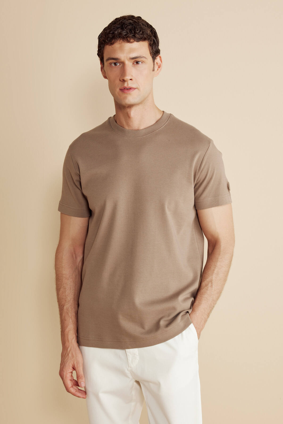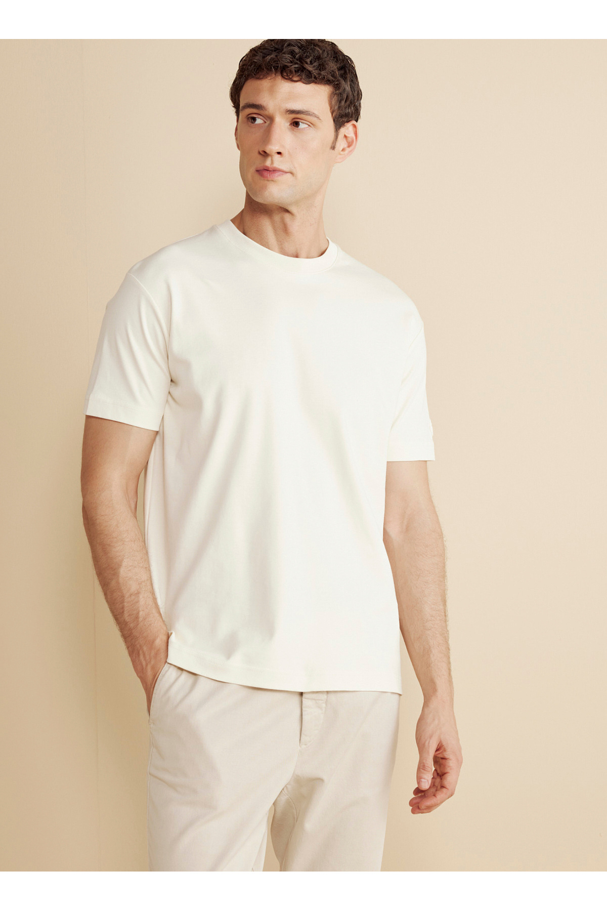 Bisiklet Yaka Bej Erkek T-Shirt BBFW25MTS004 Bisiklet Yaka Bej Erkek T-Shirt BBFW25MTS004 5003317866 2XL