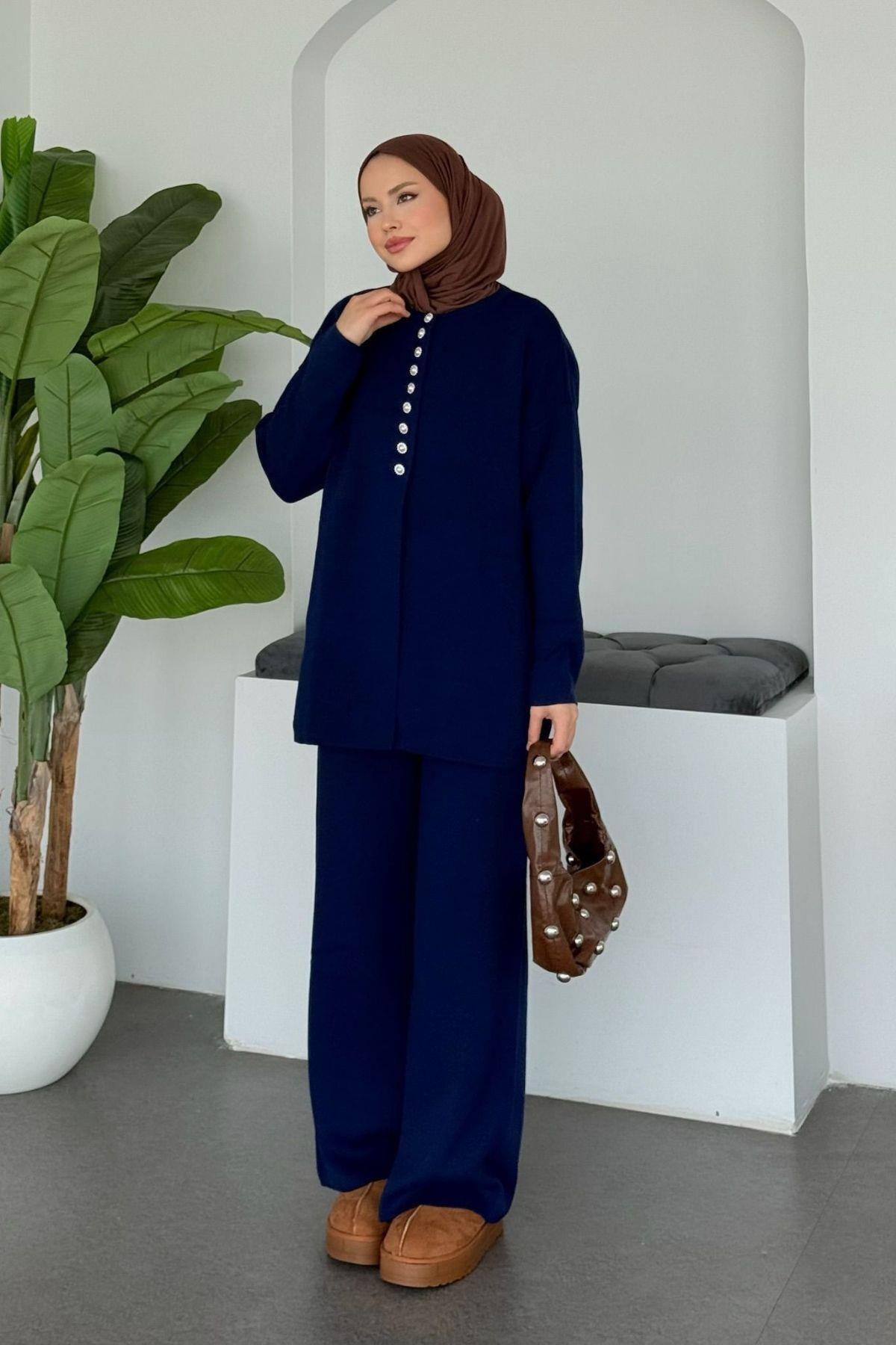 Tuğçe Düğmeli Triko Takım Lacivert Tuğçe Düğmeli Triko Takım Lacivert 7203 تک سایز