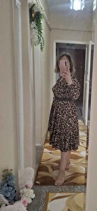 Leopar Desenli Tokalı Kemerli Kısa Fırfırlı Elbise Leopar Desenli Tokalı Kemerli Kısa Fırfırlı Elbise NovaOCT6 XL