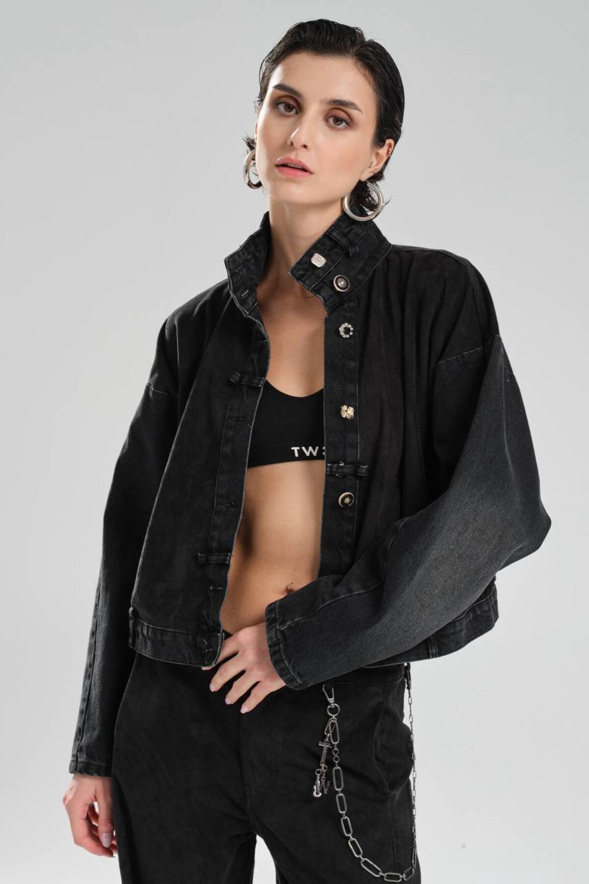 Kadın Süet Kumaş Garnili Düğme Detaylı Tasarım Ceket Kadın Süet Kumaş Garnili Düğme Detaylı Tasarım Ceket TW3-1753 L