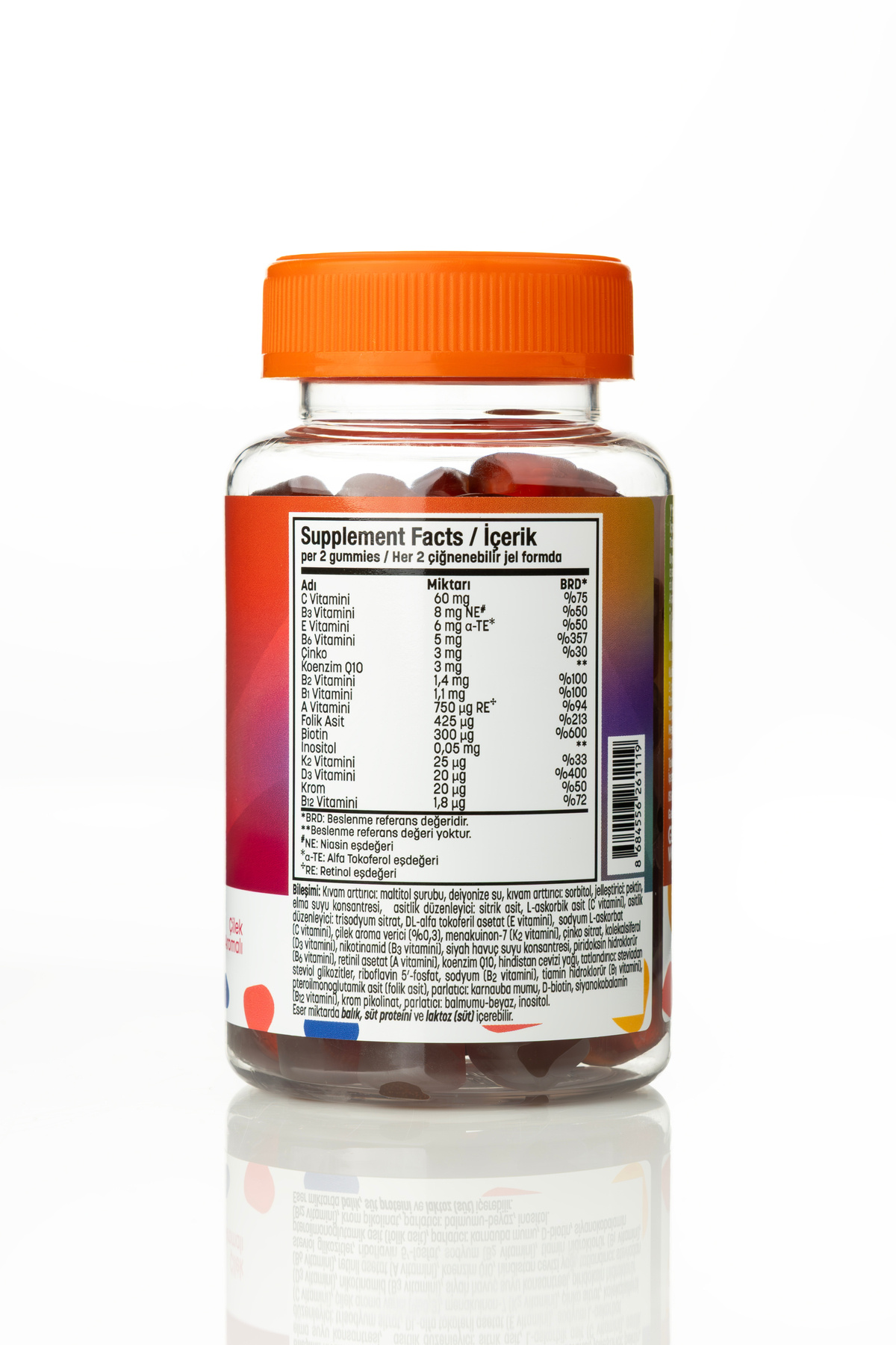 - Etken Madde : Koenzim Q10,A,B1/2/3/6/12,D3,E,K2 Vitamini