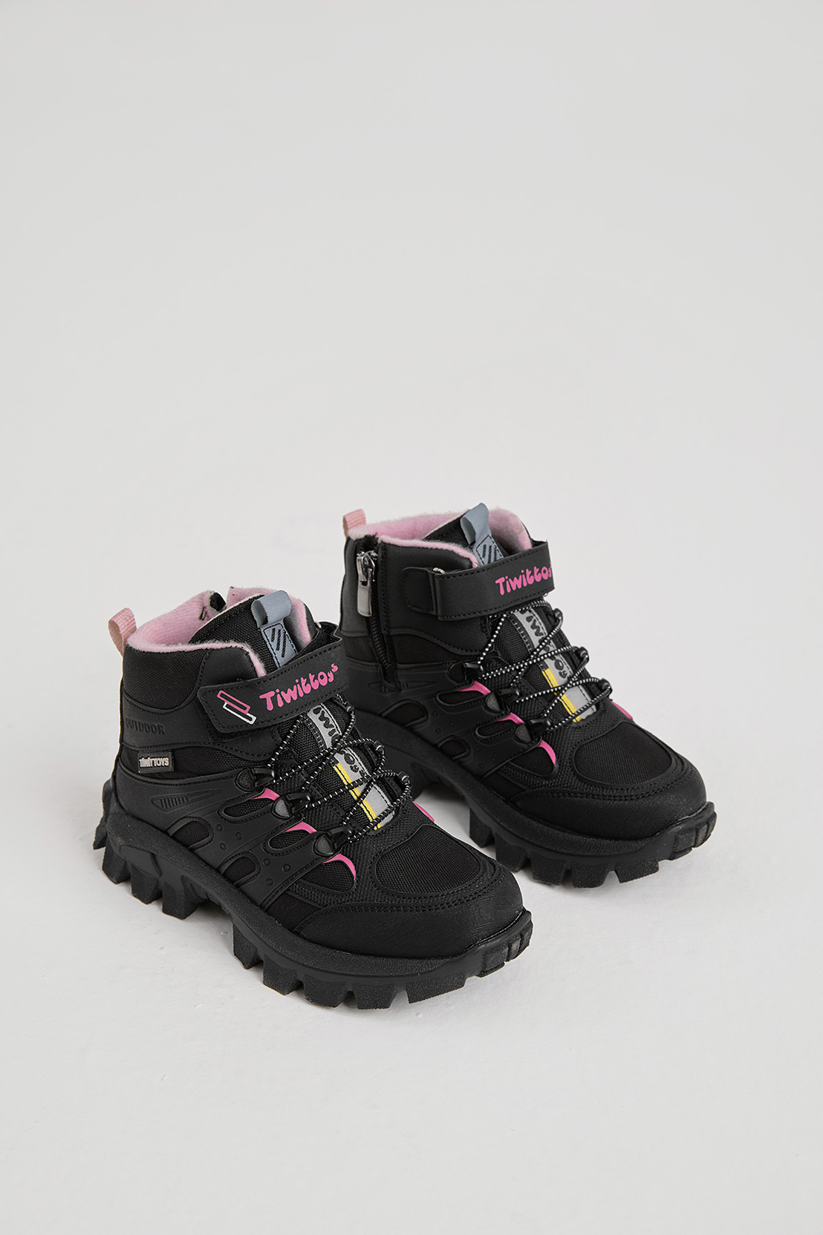 Çocuk Unisex Siyah Pudra Kalın Kauçuk Taban Lastik Bağcıklı Cırtlı Outdoor Trekking Bot Çocuk Unisex Siyah Pudra Kalın Kauçuk Taban Lastik Bağcıklı Cırtlı Outdoor Trekking Bot TBKMN340 35