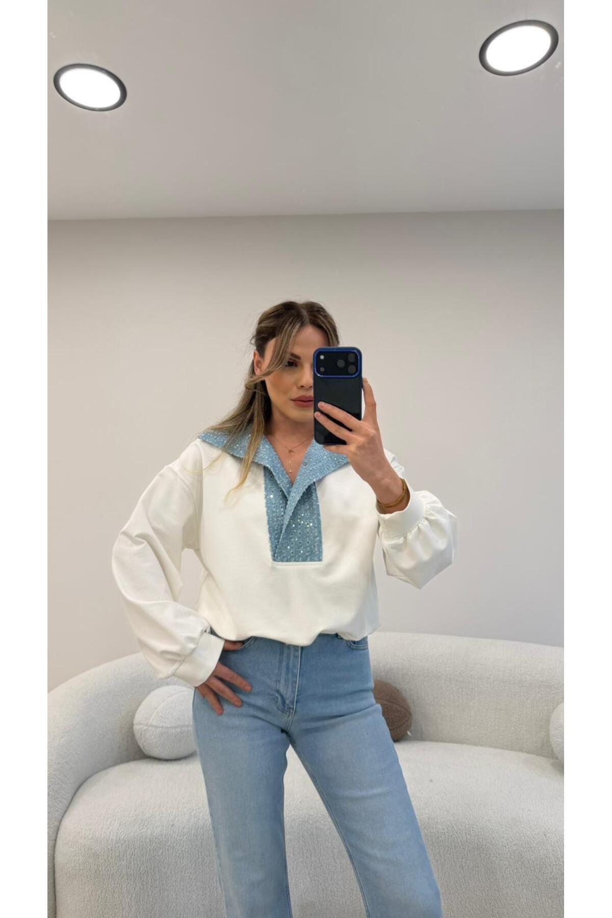 YAKA PAYETLİ KOT GARNİLİ SWEAT YAKA PAYETLİ KOT GARNİLİ SWEAT TXE9AE19353363 L