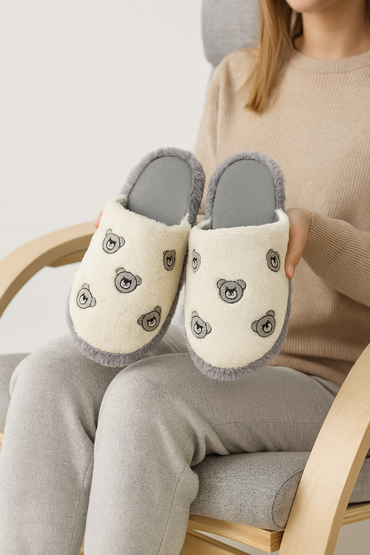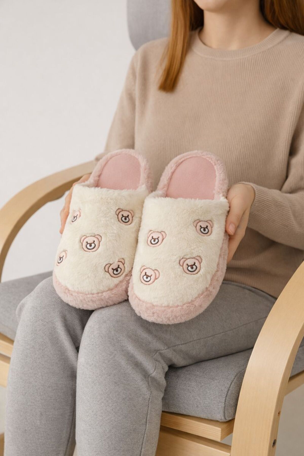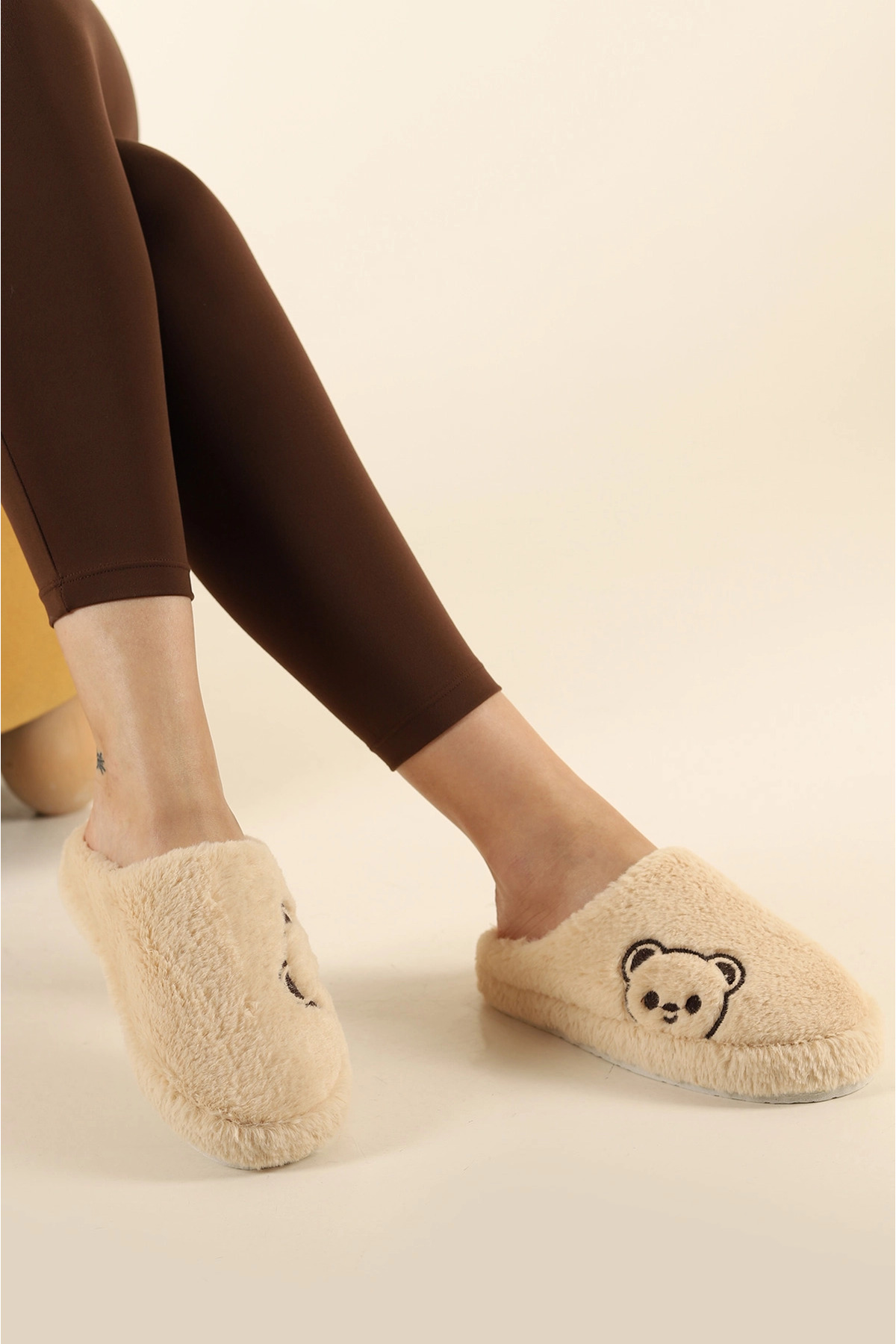 Kadın Kahverengi Ayıcık Nakışlı Peluş Ev Terliği BYNDFKB02 Kadın Kahverengi Ayıcık Nakışlı Peluş Ev Terliği BYNDFKB02 40-41