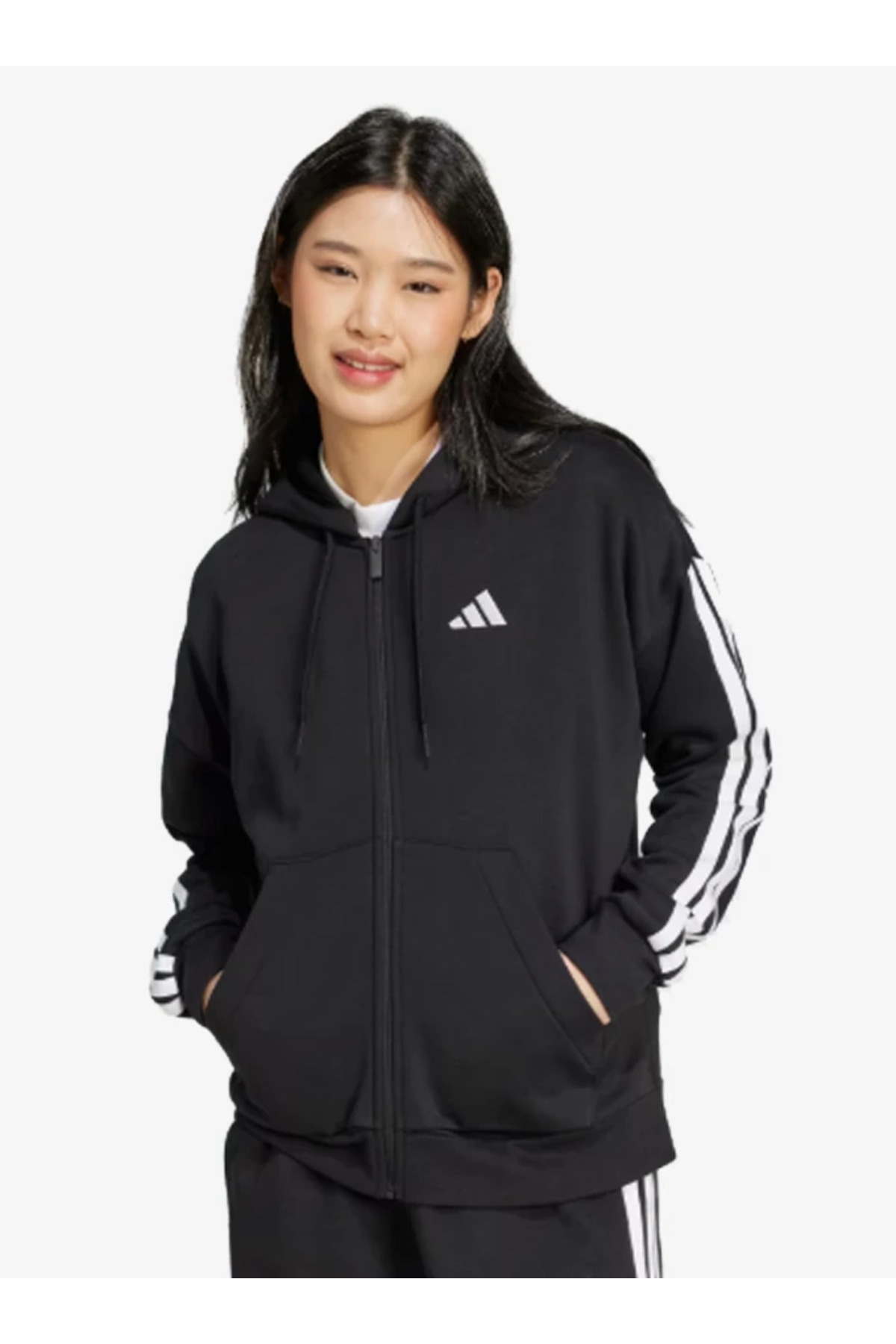 Essentials 3-Stripes Full-Zip Fleece Kadın Ceket Essentials 3-Stripes Full-Zip Fleece Kadın Ceket ADJE1283 L