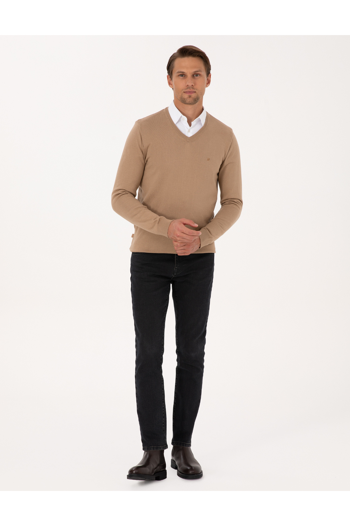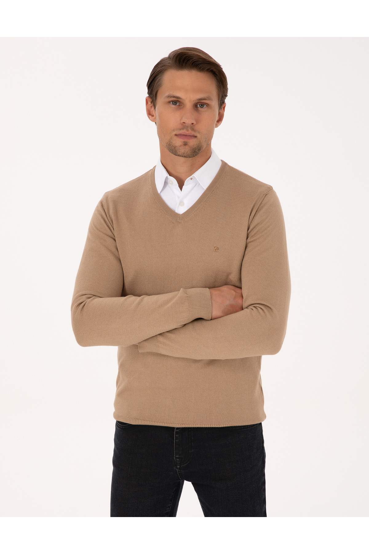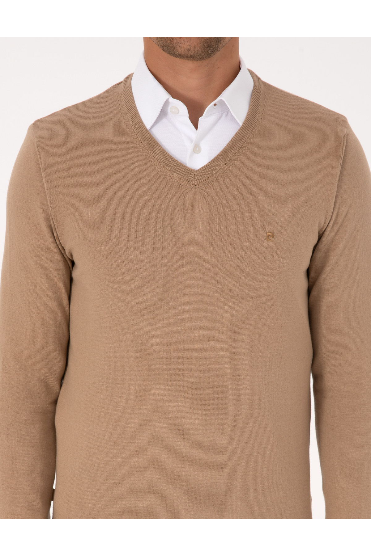 Camel Slim Fit V Yaka Basic Triko Kazak 50314190-VR015 Camel Slim Fit V Yaka Basic Triko Kazak 50314190-VR015 3XL