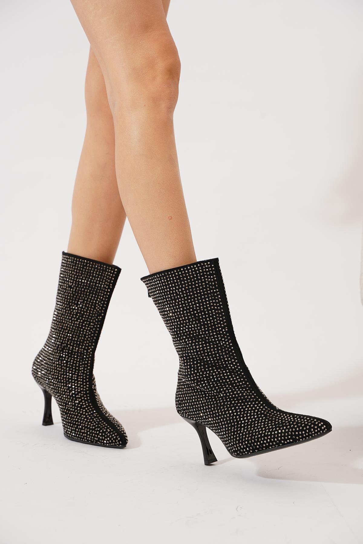 Yesu Komple Taşlı İnce Ökçe Kadın Topuklu Bot Siyah Süet Yesu Komple Taşlı İnce Ökçe Kadın Topuklu Bot Siyah Süet 393 26K09 40