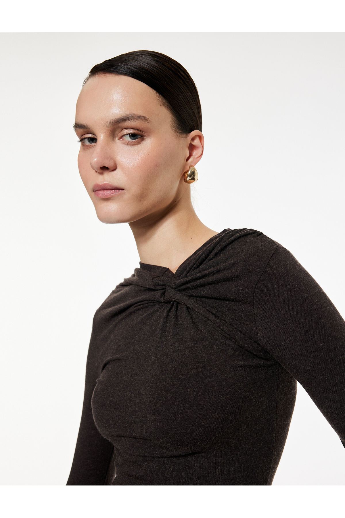 Slim Fit Uzun Çan Kollu Dik Yaka Bluz Slim Fit Uzun Çan Kollu Dik Yaka Bluz 6WAK80209EK XL
