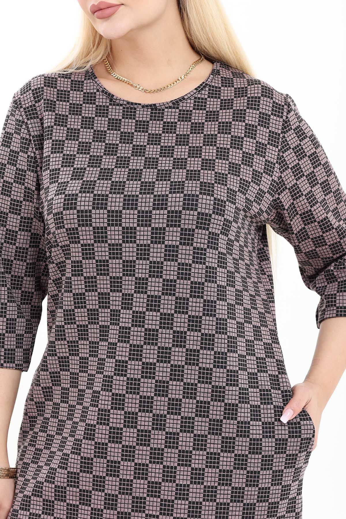 Çift Cepli Desenli Esnek Kışlık Büyük Beden Midi Elbise 38F-2726 Çift Cepli Desenli Esnek Kışlık Büyük Beden Midi Elbise 38F-2726 29D-2725 52-54