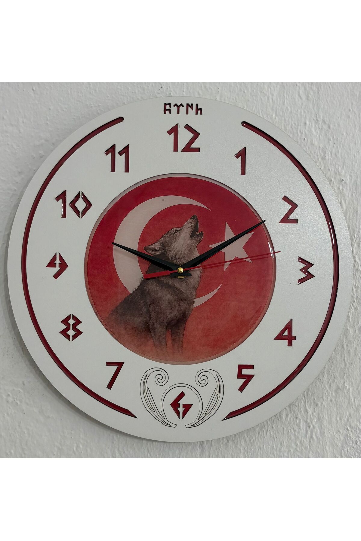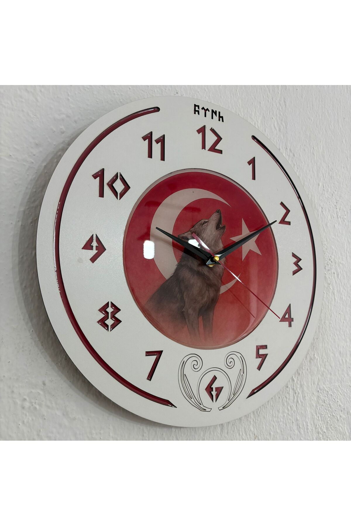 Kişiye Özel İsimli Bozkurt ve Türk Bayraklı Epoksi Saat | Göktürkçe Rakamlı | Milli Tasarım | 35 cm Kişiye Özel İsimli Bozkurt ve Türk Bayraklı Epoksi Saat | Göktürkçe Rakamlı | Milli Tasarım | 35 cm ST05 تک سایز