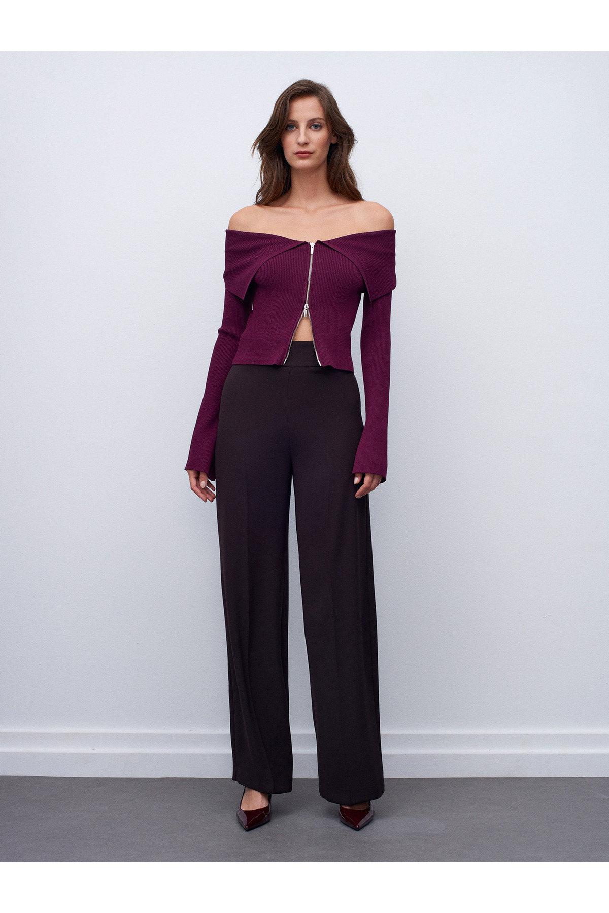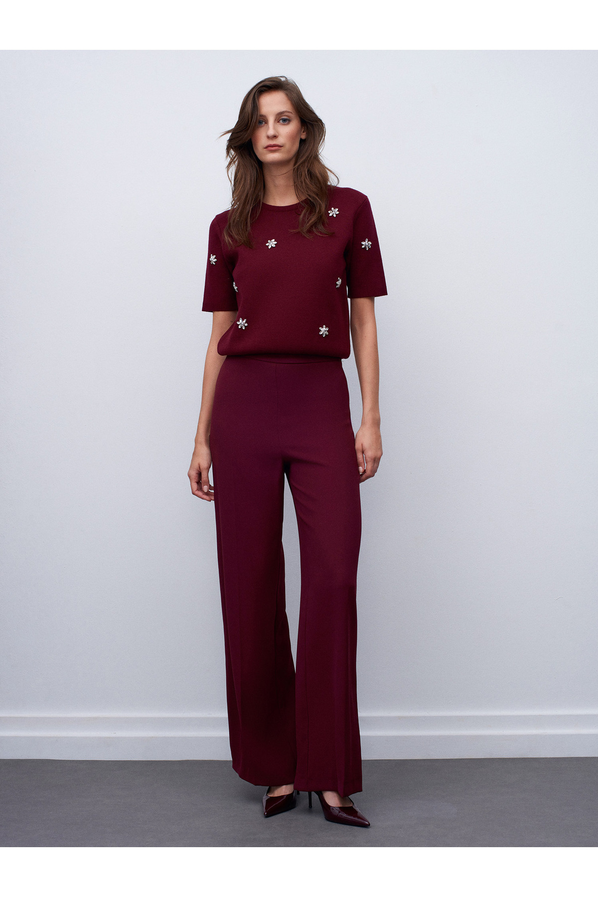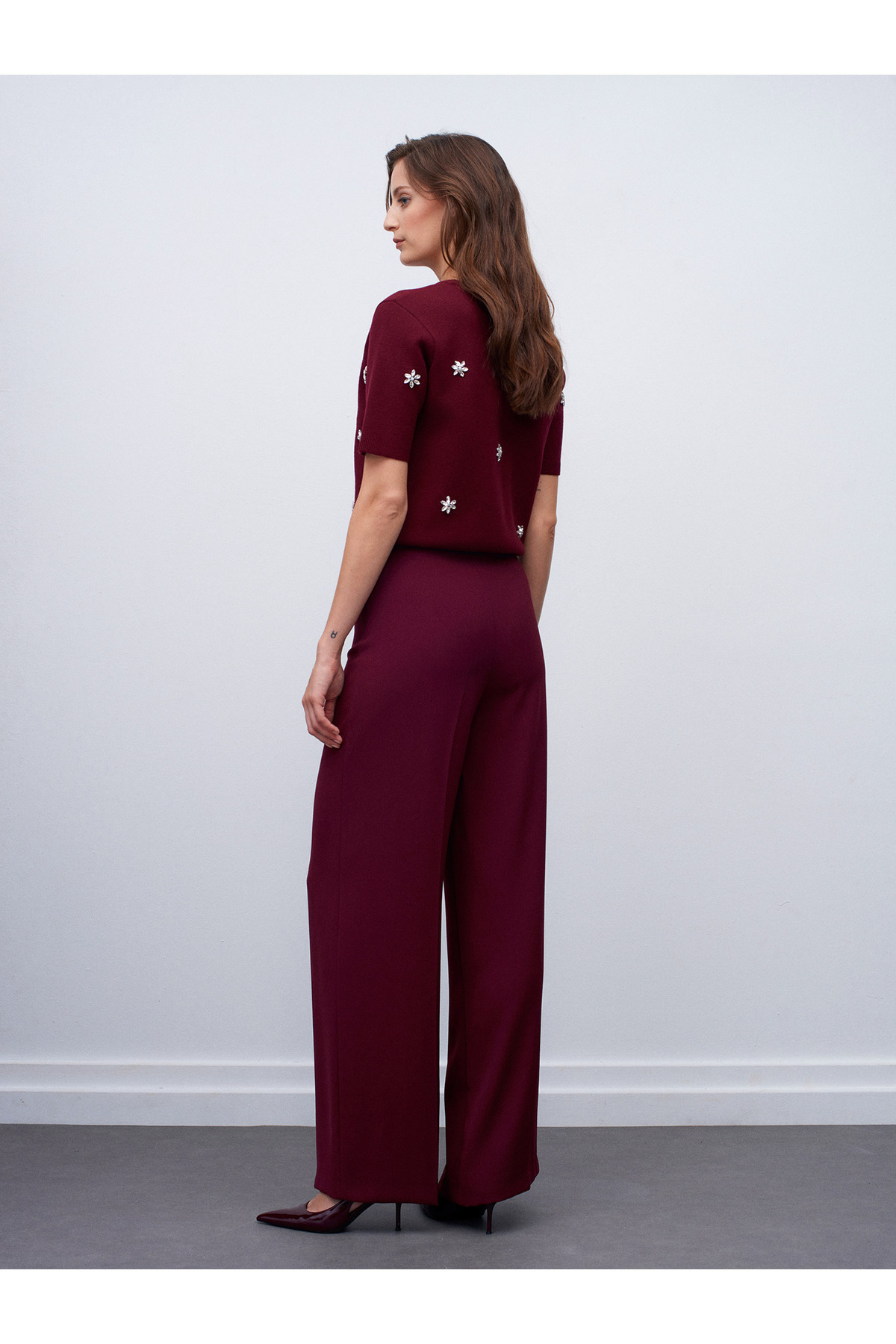 7535 Yanı Fermuarlı Bol Paça Pantolon-Bordo 7535 Yanı Fermuarlı Bol Paça Pantolon-Bordo 106A07535 40