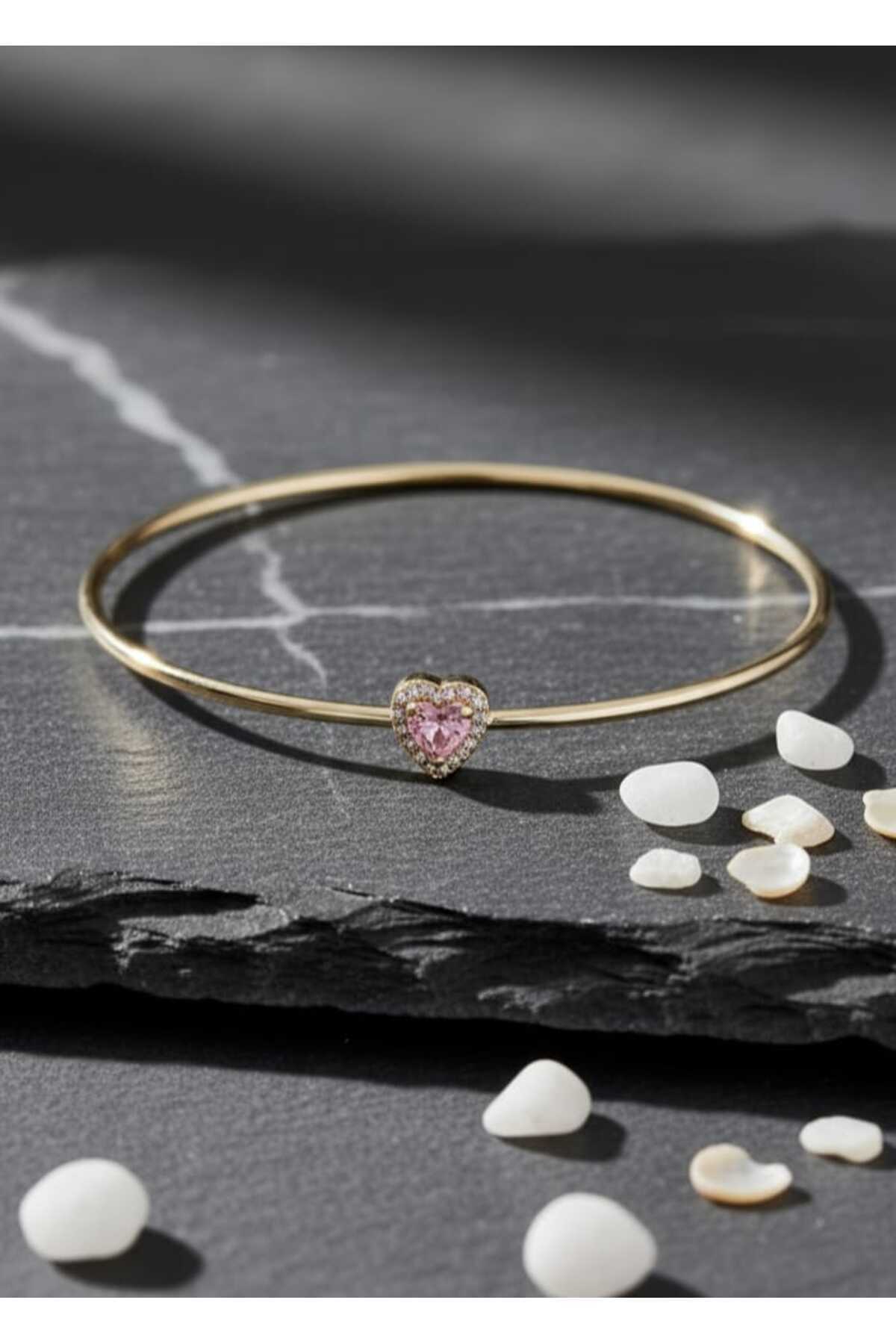 Minimalist Pembe Kalp Telli Kelepçe Bilezik Minimalist Pembe Kalp Telli Kelepçe Bilezik BBR-357235712 18