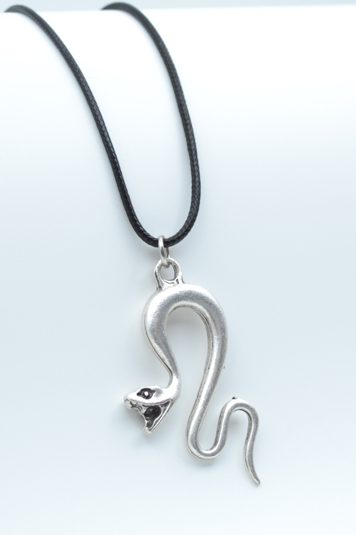 Kobra Yılan Gümüş Kaplama Deri İp Kolye Kobra Yılan Gümüş Kaplama Deri İp Kolye P1072S9281 60 cm