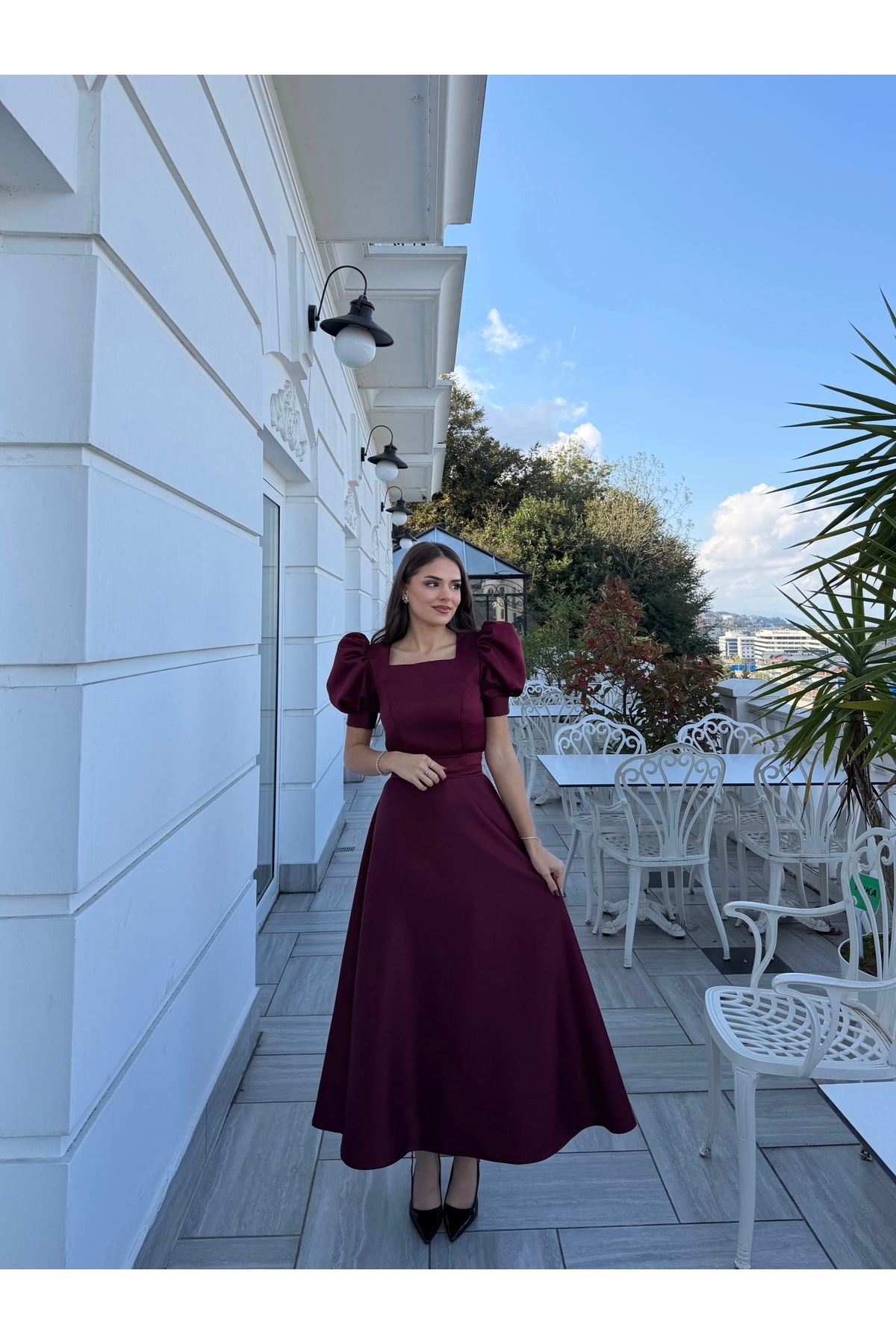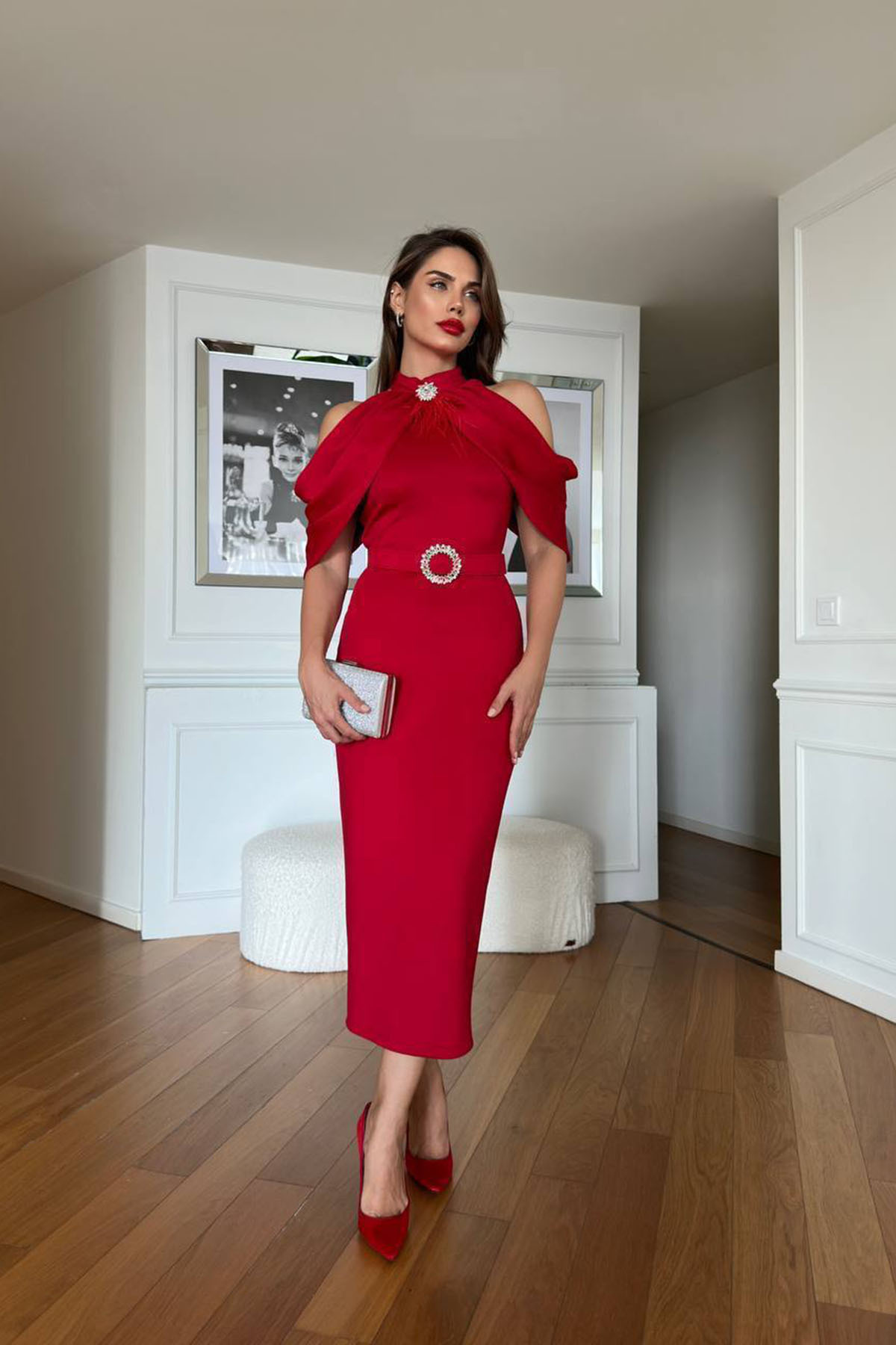 kadın omuz detaylı toka kemerli midi boy elbise NBNC110095 kadın omuz detaylı toka kemerli midi boy elbise NBNC110095 44