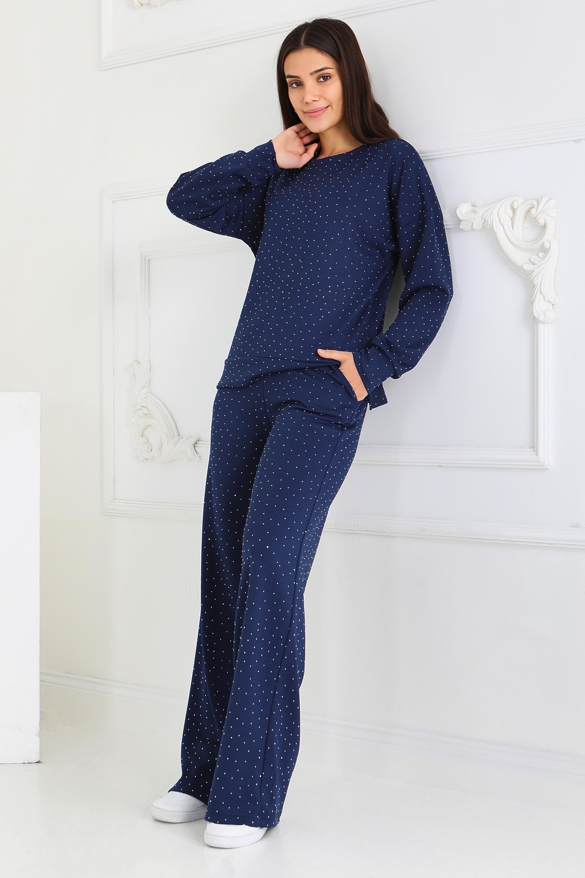 Taşlı Modal İkili Takım Lacivert - 27868-LACIVERT Taşlı Modal İkili Takım Lacivert - 27868-LACIVERT