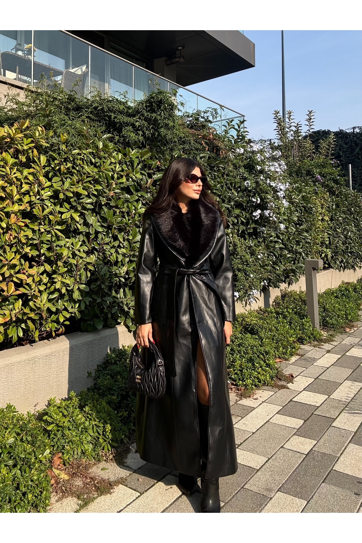 Loyra Kürk Detaylı Deri Kaban Siyah Loyra Kürk Detaylı Deri Kaban Siyah 202569 42