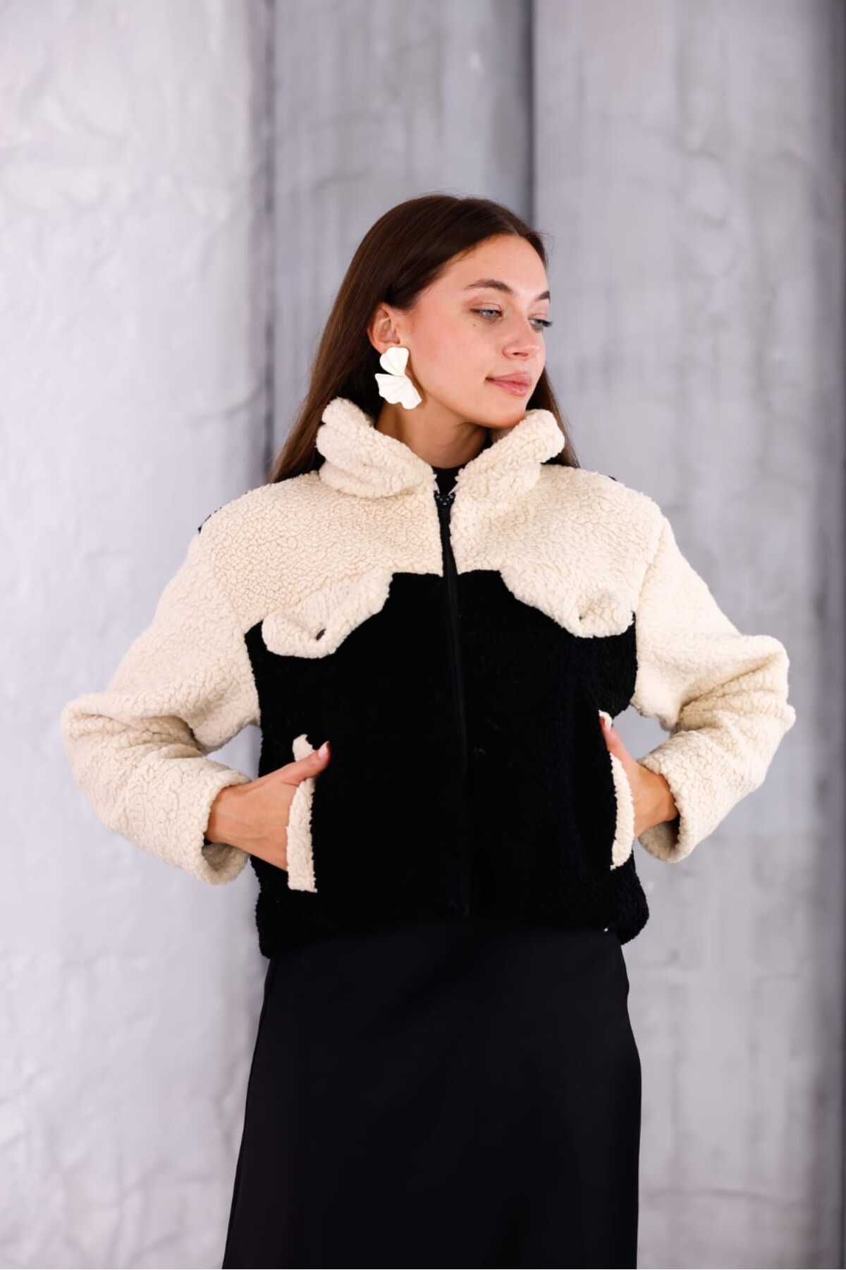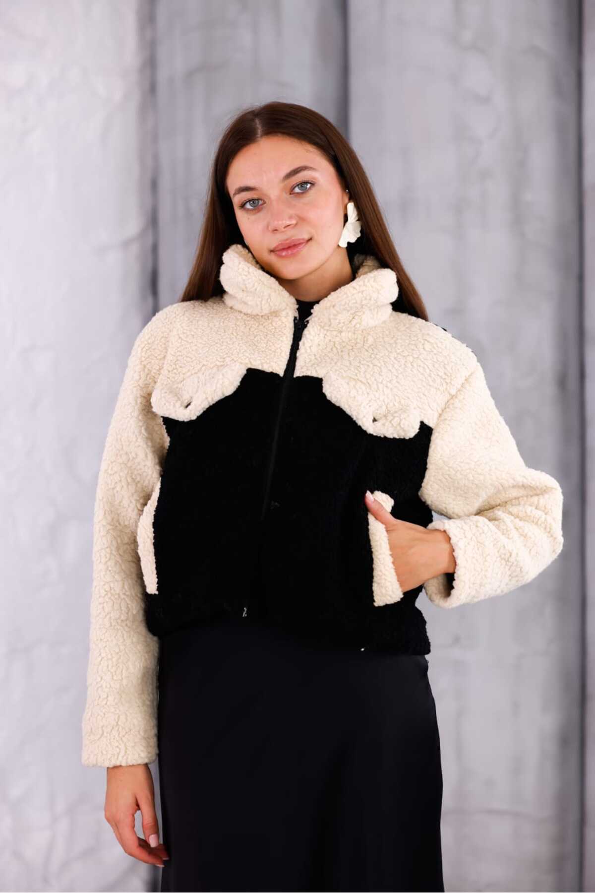 Trend Kadın Krem Kahve Peluş Ceket | Kışlık Crop Kısa Fermuarlı Yüksek Yaka Mont Trend Kadın Krem Kahve Peluş Ceket | Kışlık Crop Kısa Fermuarlı Yüksek Yaka Mont 005 L