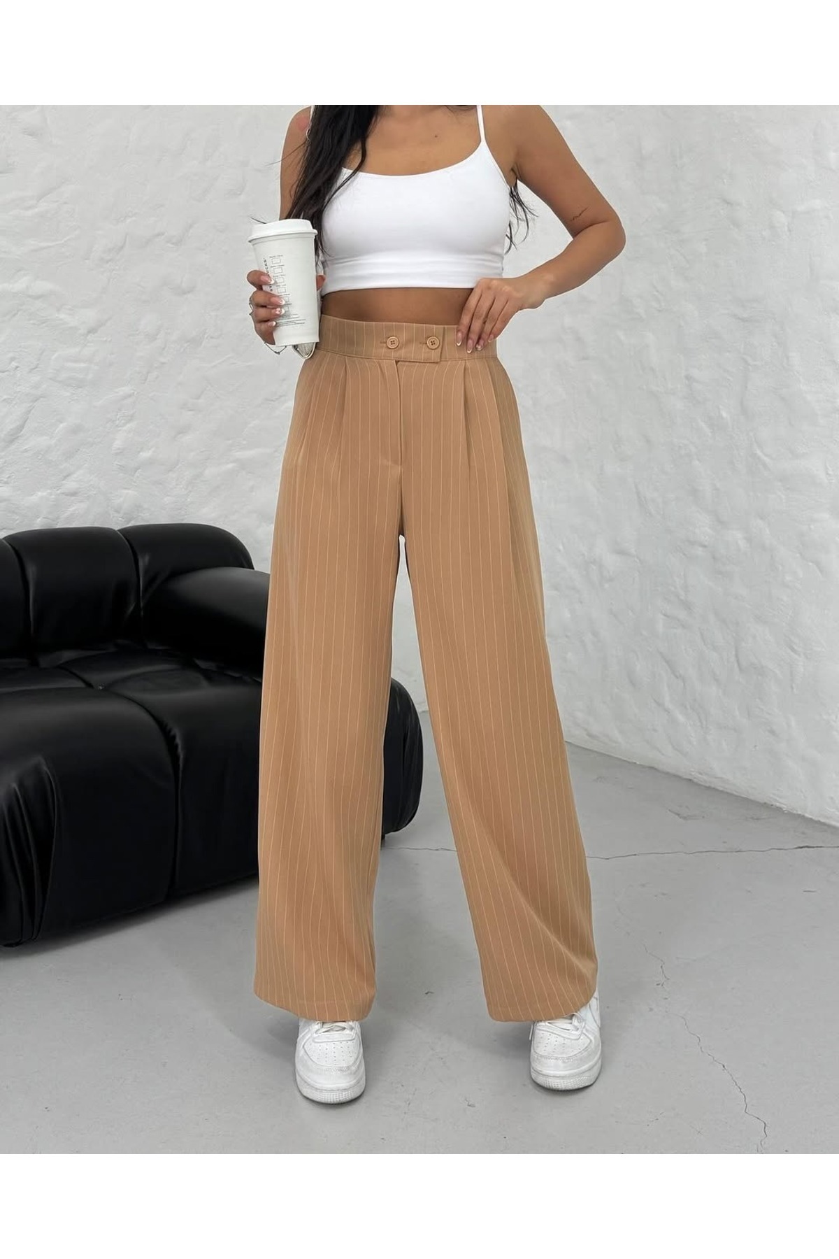 Kadın Geniş Paça Yüksek Bel Düğmeli Pantolon Kadın Geniş Paça Yüksek Bel Düğmeli Pantolon gafg 42