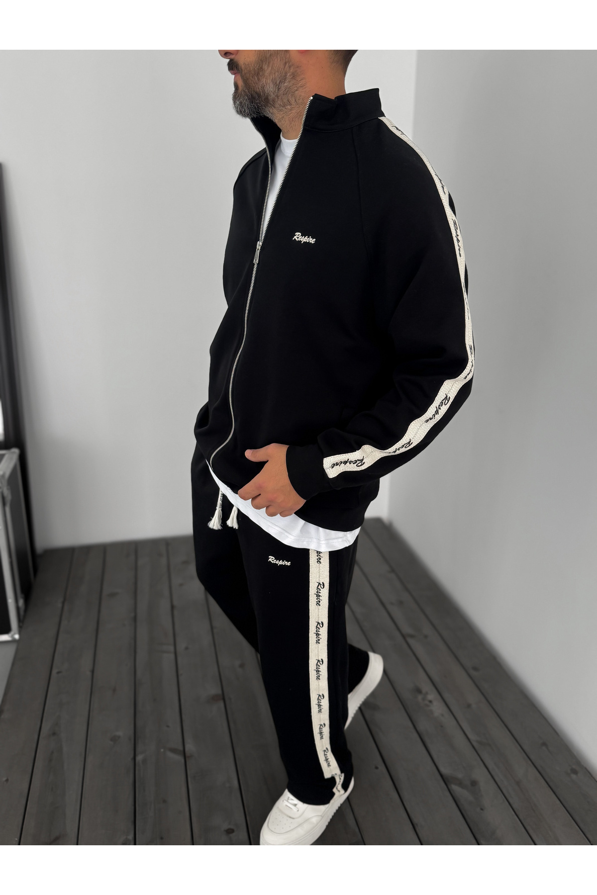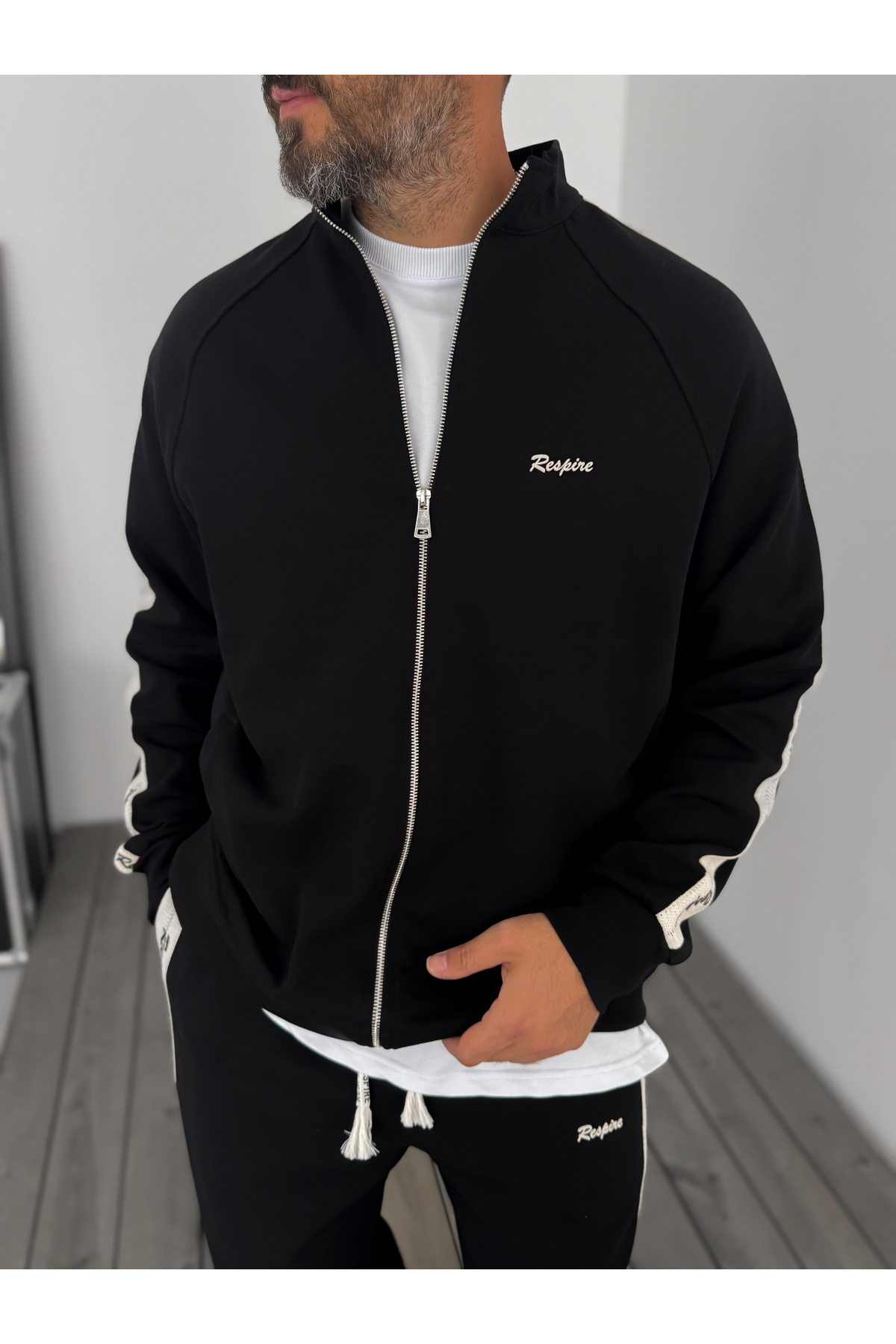 Siyah Res Hasır Şeritli Sweatshirt RES-1008 Siyah Res Hasır Şeritli Sweatshirt RES-1008 9335 XL
