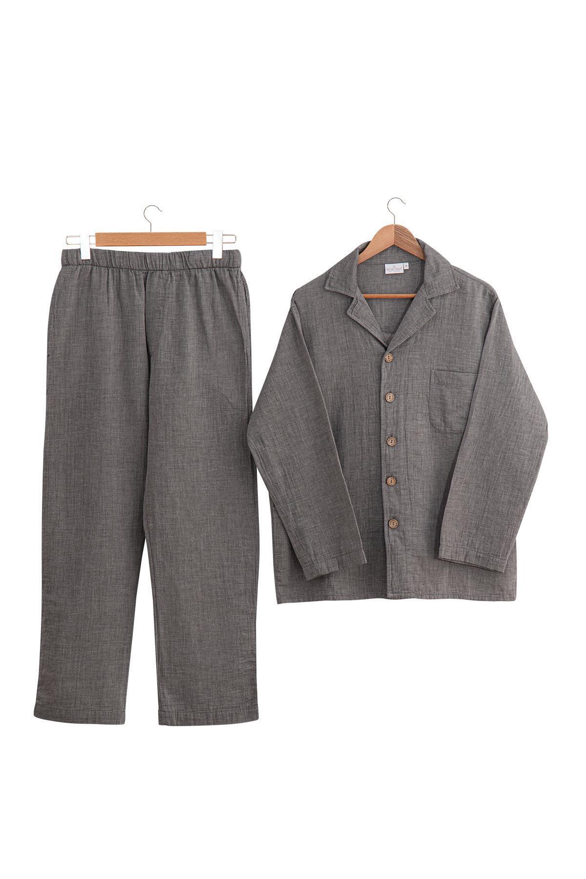 Erkek Jakarlı Pijama Takımı Gri Erkek Jakarlı Pijama Takımı Gri 22512G4009 2XL