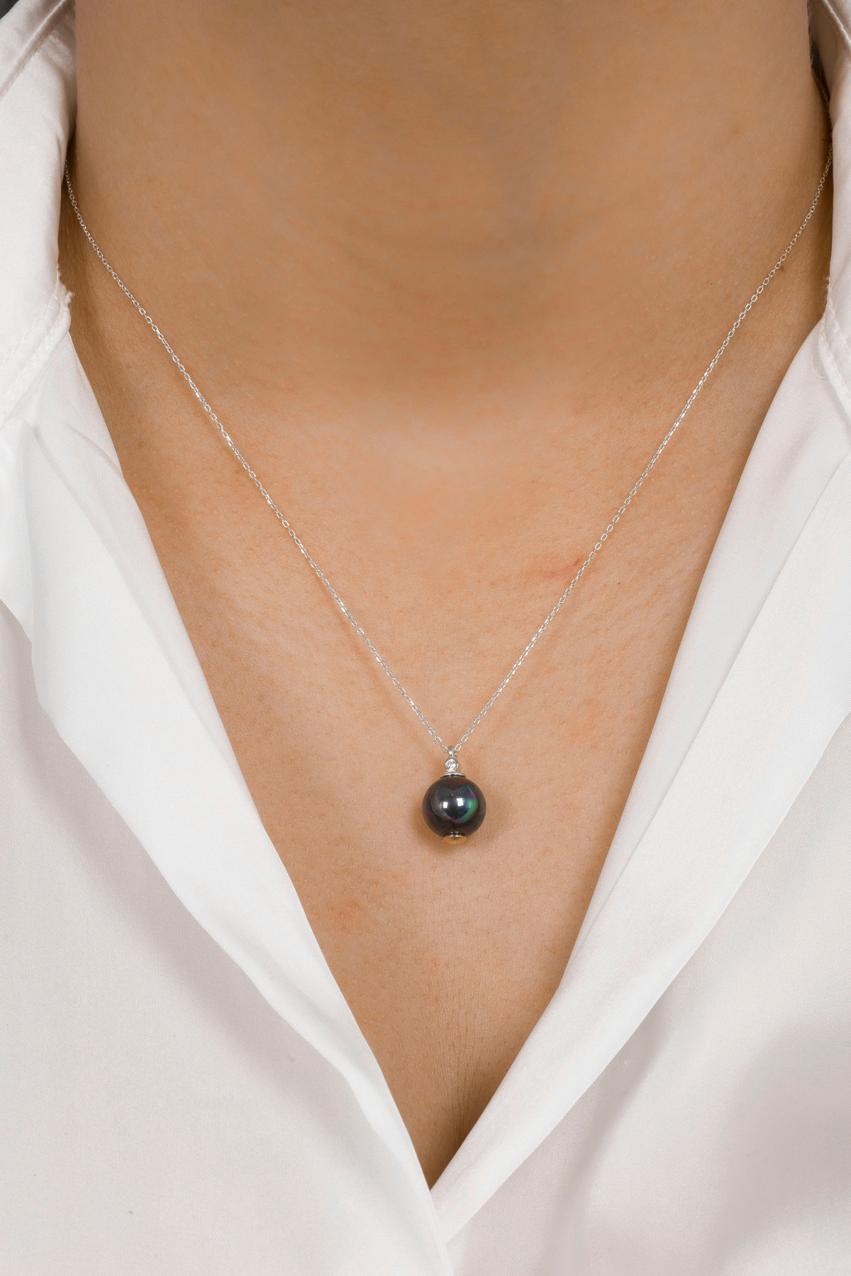 925 Ayar Gümüş Siyah İnci Taşlı Rodaj Kaplamalı Kadın Kolye 10mm - Zarif Takı 925 Ayar Gümüş Siyah İnci Taşlı Rodaj Kaplamalı Kadın Kolye 10mm - Zarif Takı KLS625 تک سایز