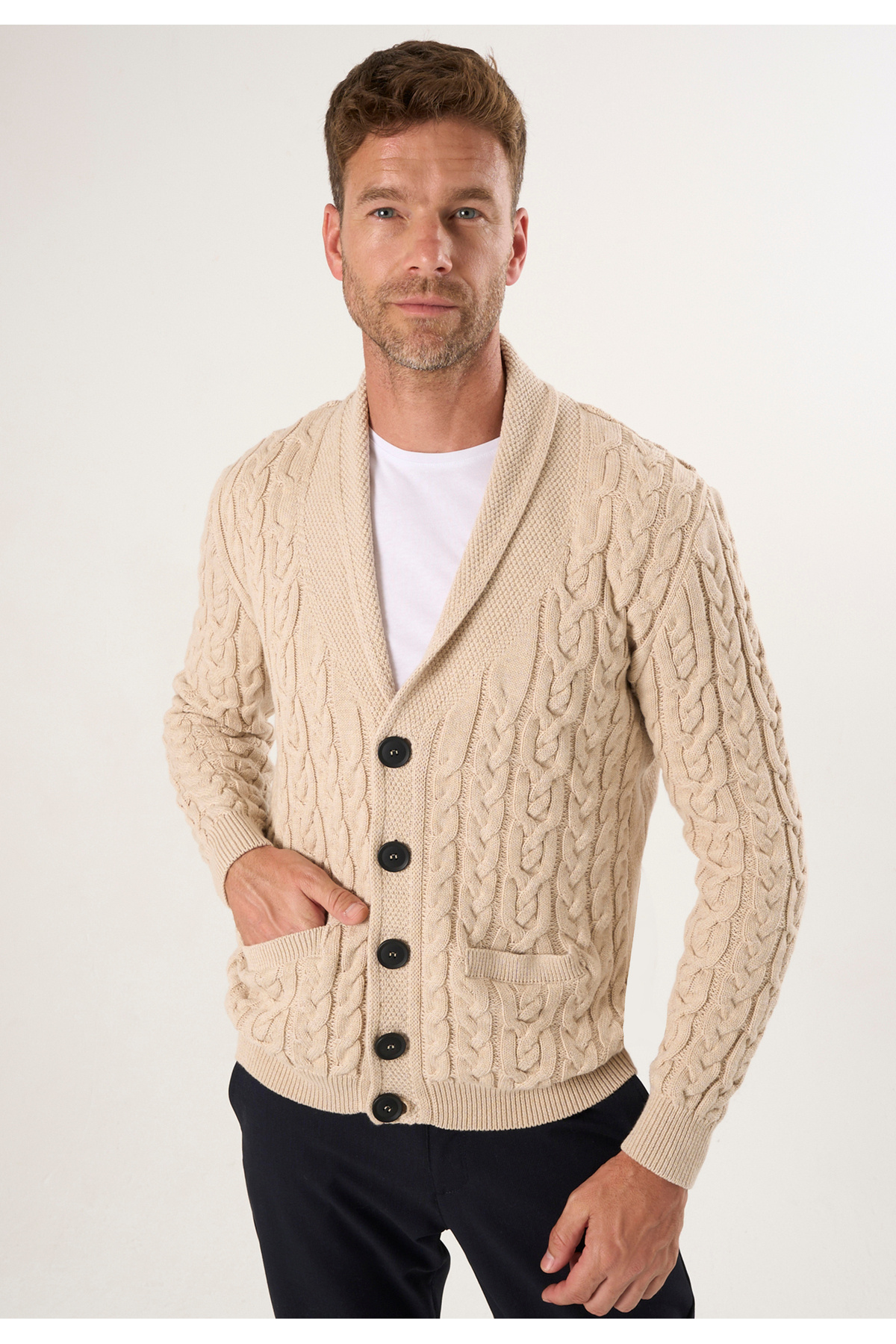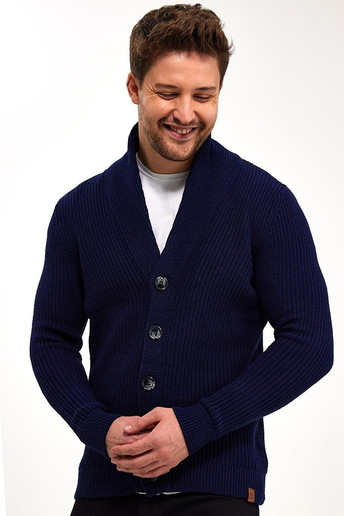 Erkek Lacivert Düğmeli Örgü Desenli Triko Hırka Erkek Lacivert Düğmeli Örgü Desenli Triko Hırka FH/807 2XL
