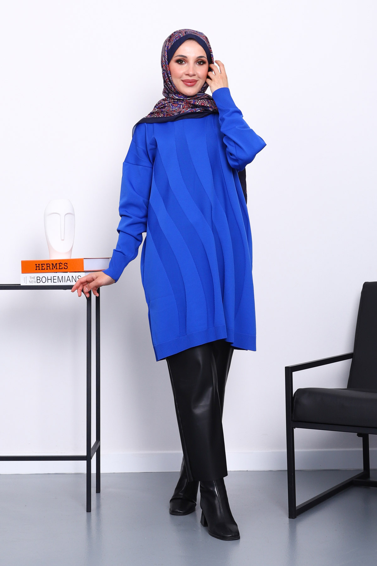 Saks Mavi Soğuk İplik Merserize Triko Tunik Saks Mavi Soğuk İplik Merserize Triko Tunik IMJ008076 Standart