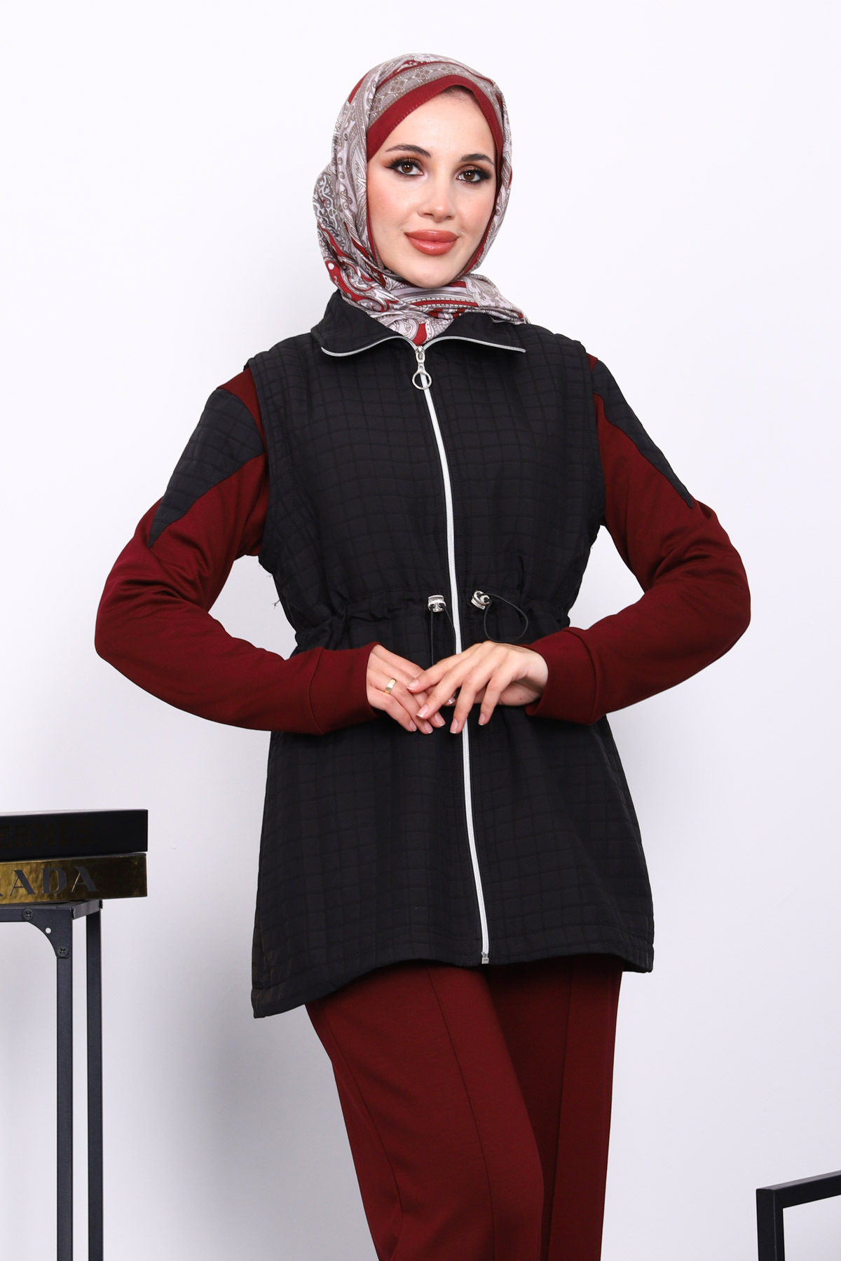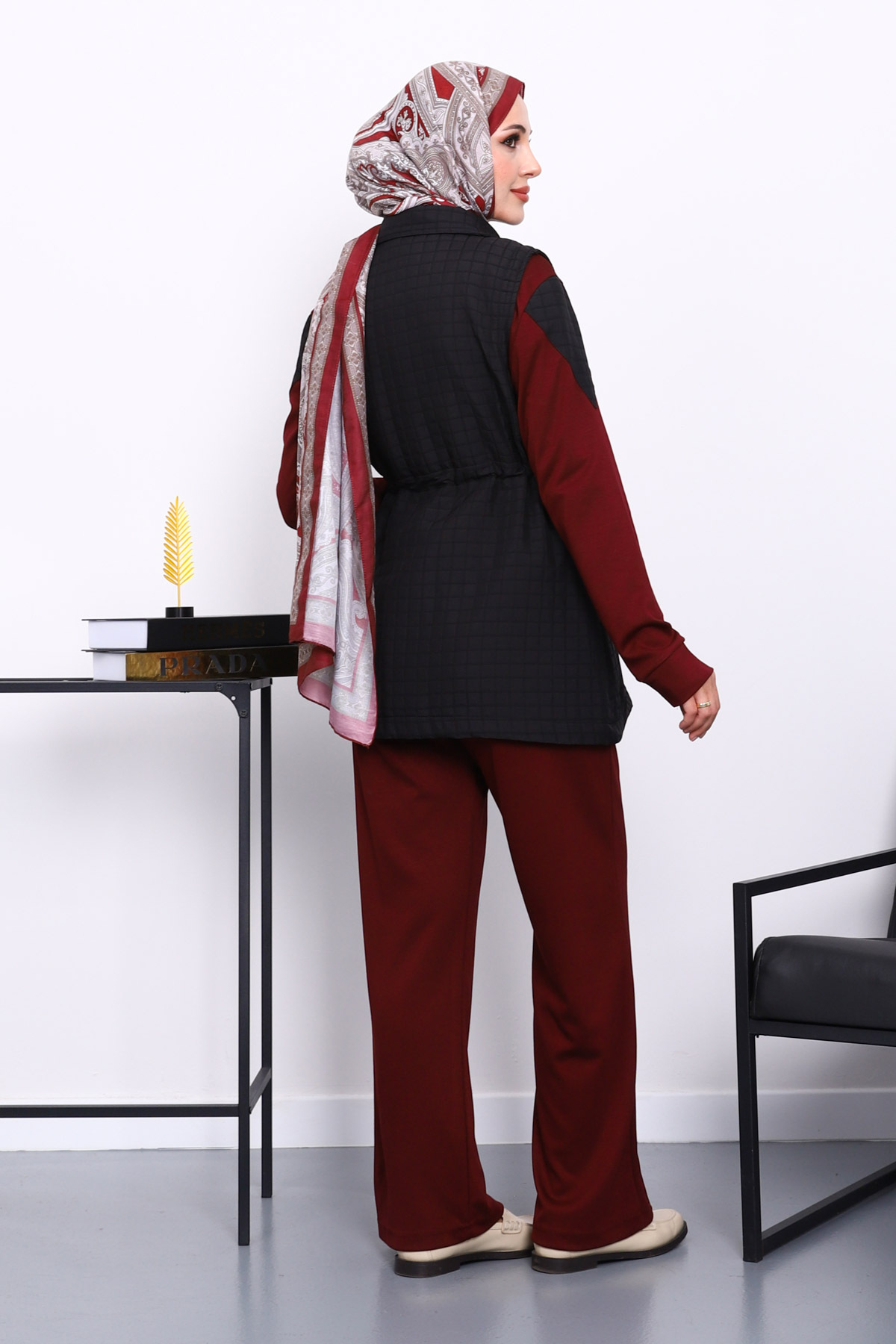 Bordo Kapitone Yelekli Tunik Pantolonlu Takım Bordo Kapitone Yelekli Tunik Pantolonlu Takım IMJ008165 44