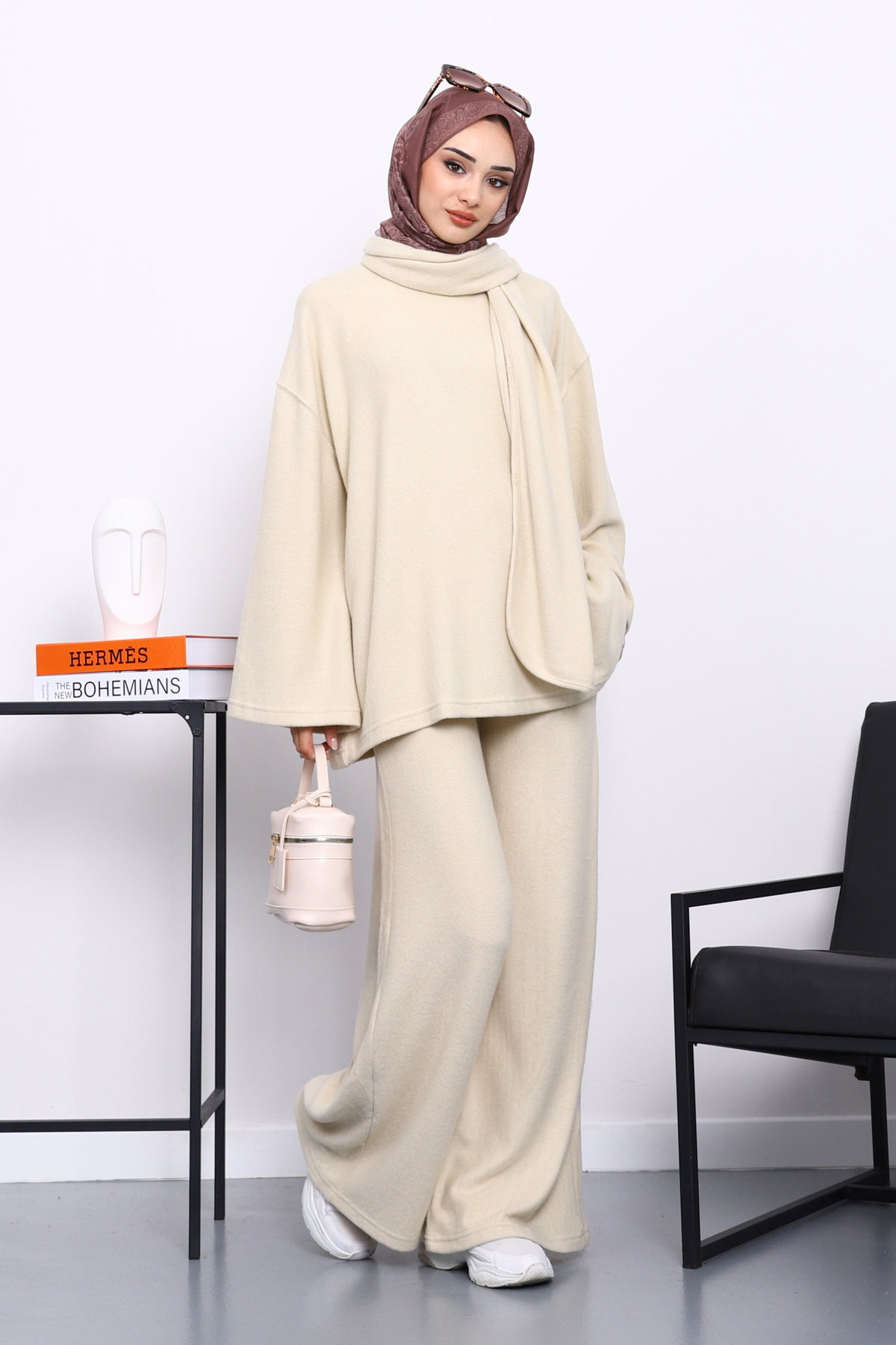 Taş Atkılı Tunik Pantolonlu Fitilli Takım Taş Atkılı Tunik Pantolonlu Fitilli Takım IMJ008196 2