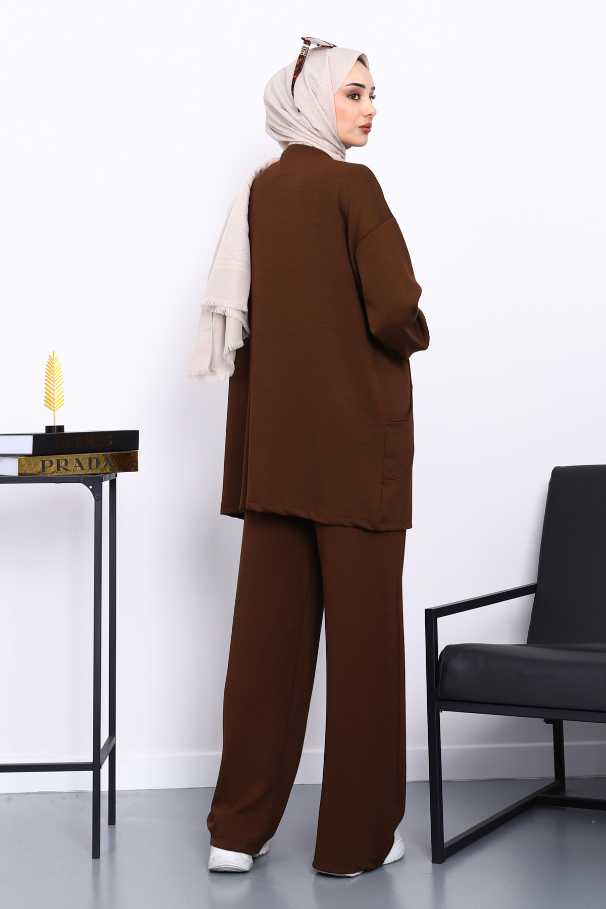 Kahverengi Yan Cepli Omuz Parçalı Alt Çımalı Modal Takım Kahverengi Yan Cepli Omuz Parçalı Alt Çımalı Modal Takım IMJ008246 XL