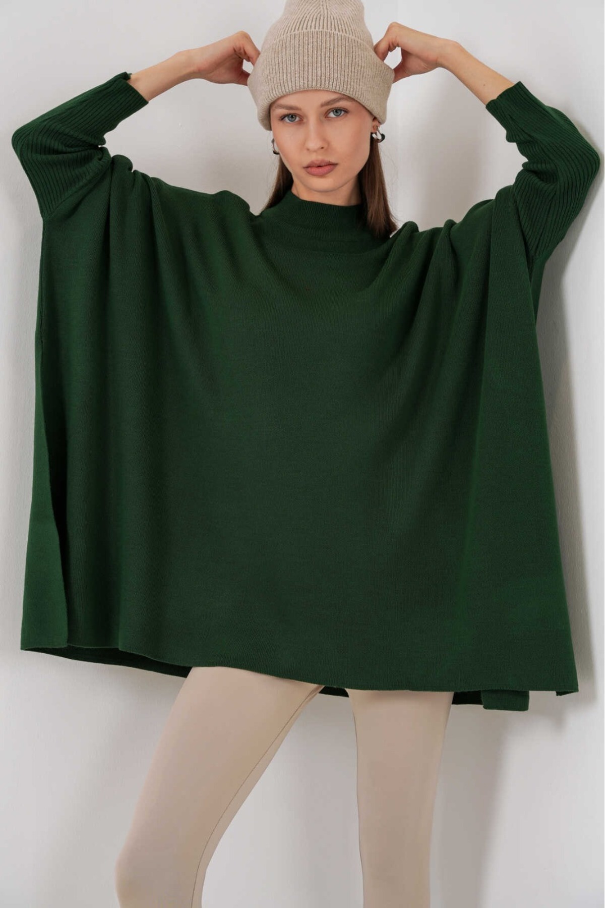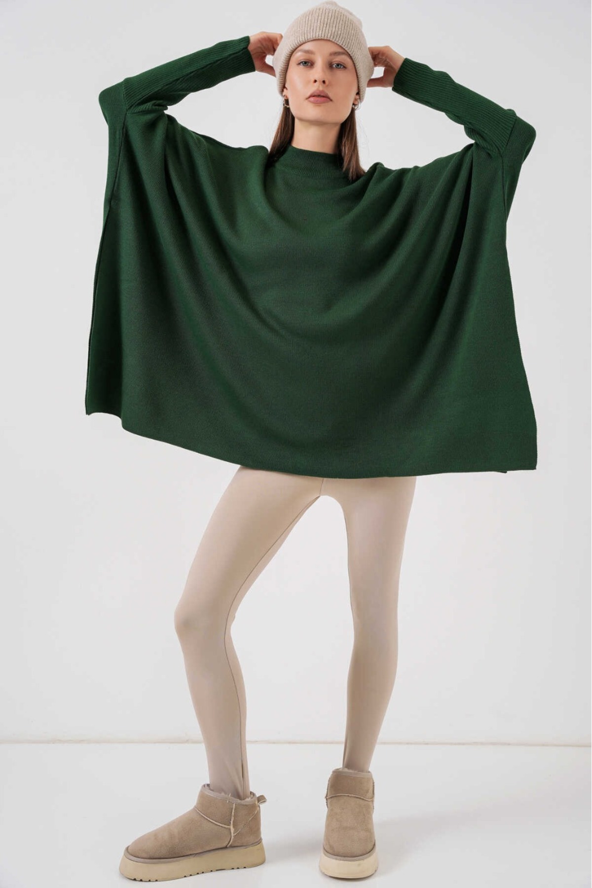 Kadın Zümrüt Yeşili Oversize Yırtmaçlı Panço Kazak Kadın Zümrüt Yeşili Oversize Yırtmaçlı Panço Kazak MM10076 Standart