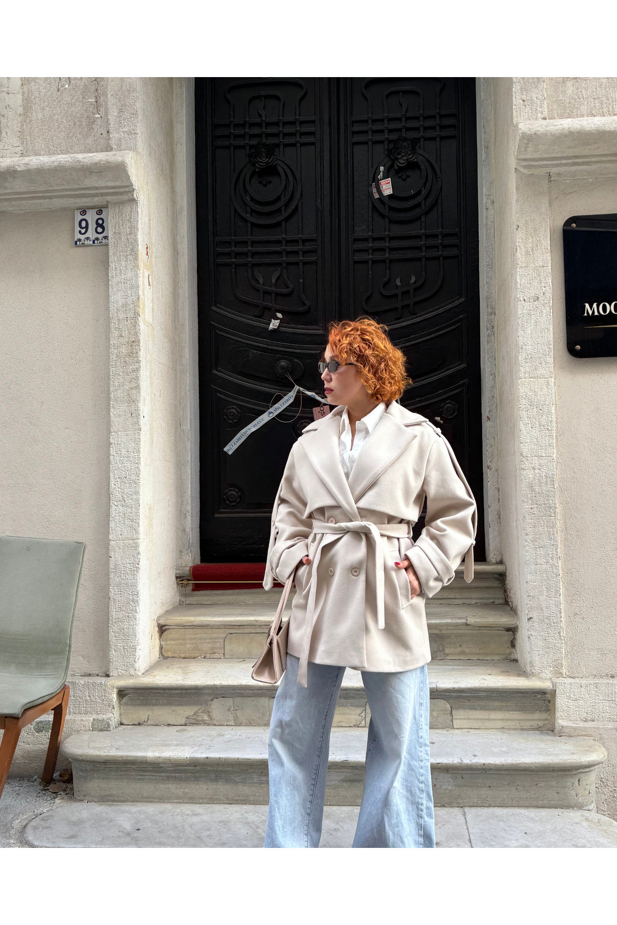 Premium Apoletli Bağlama Detaylı Kısa Kaşe Kaban Ceket Premium Apoletli Bağlama Detaylı Kısa Kaşe Kaban Ceket Apoletli Bağlama Detaylı Derry L