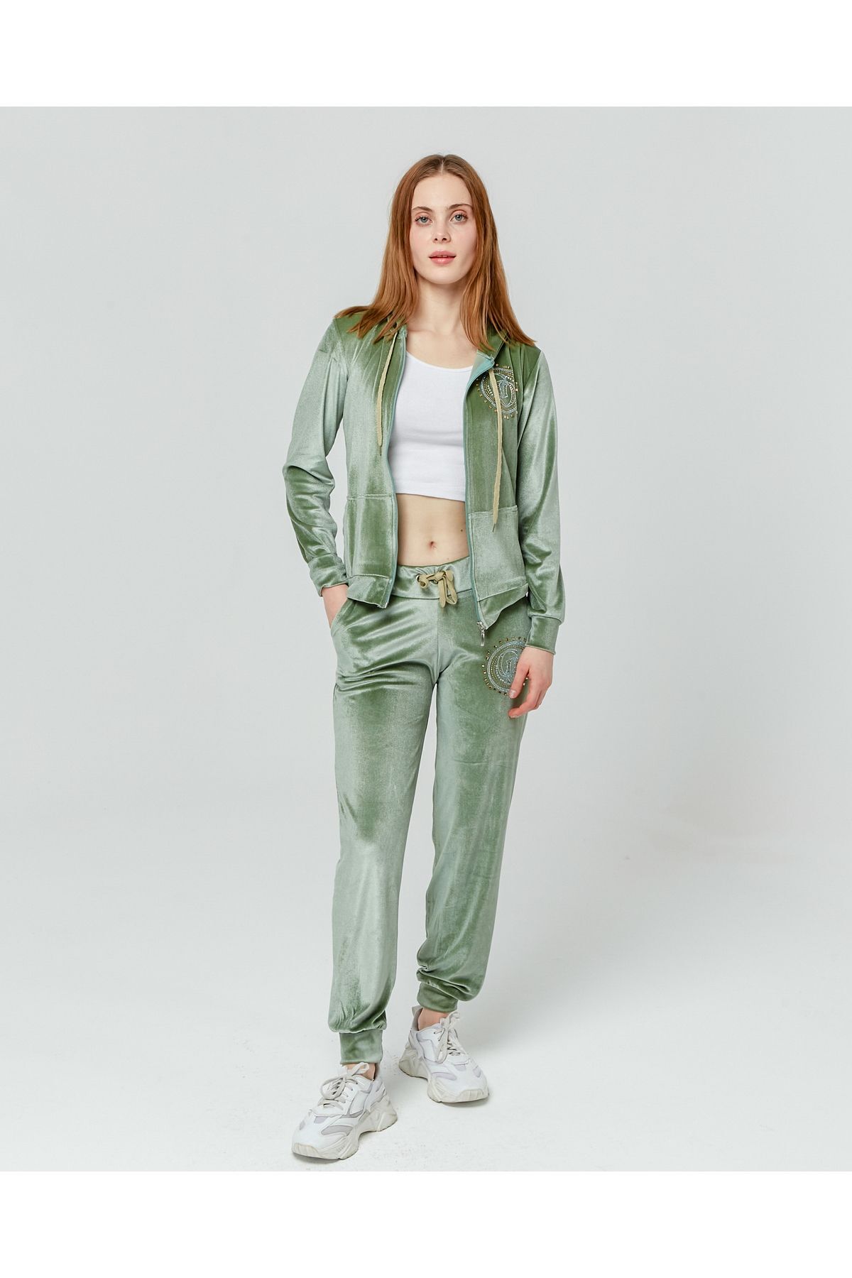 Kadın Kadife Oversize Salaş Kangru Cep Kapşonlu Sweatshirt Lastik Paça Spor Şık Eşofman Takımı Kadın Kadife Oversize Salaş Kangru Cep Kapşonlu Sweatshirt Lastik Paça Spor Şık Eşofman Takımı MMYG1396 L
