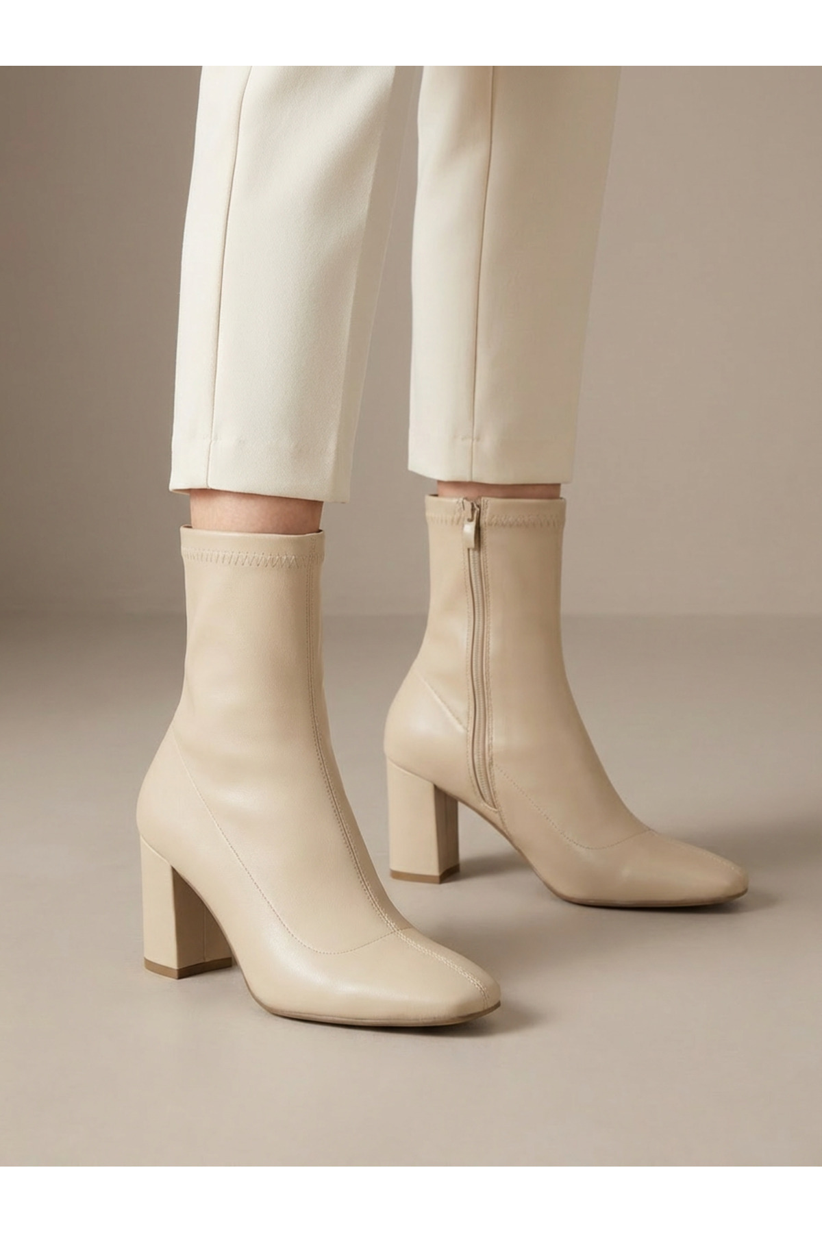 Bej Cilt Sivri Burun Ortadan Dikişli Topuklu Bot Bej Cilt Sivri Burun Ortadan Dikişli Topuklu Bot SV0055 41