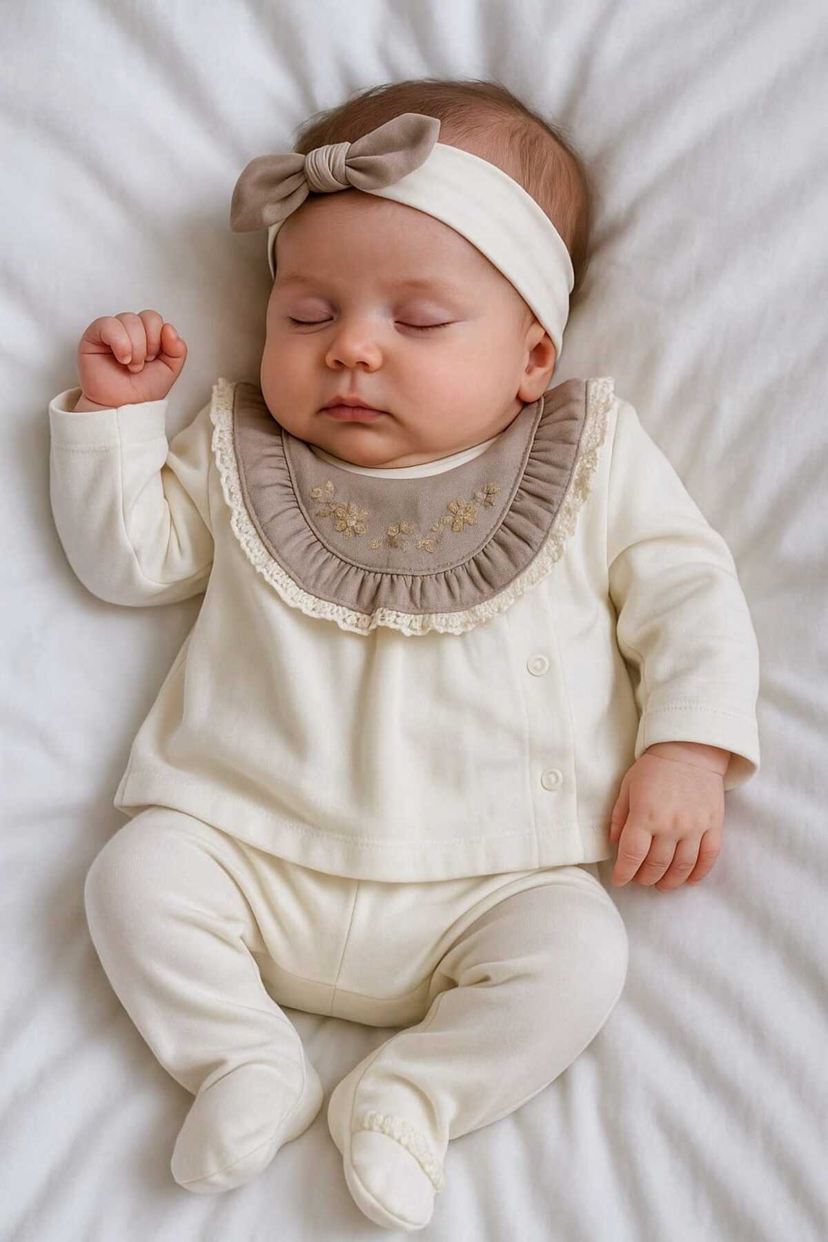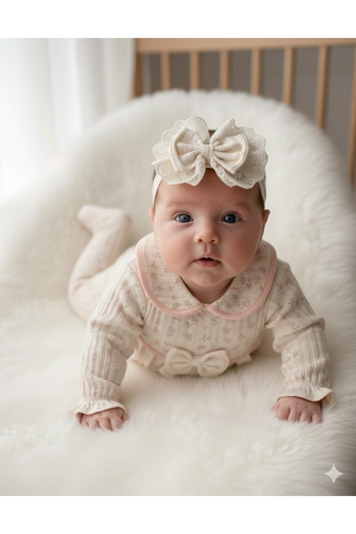 YENİ DOĞAN KIZ UZUN KOLLU BASKI ÇİÇEK EKRU ROBA FİSTO TULUM SET YENİ DOĞAN KIZ UZUN KOLLU BASKI ÇİÇEK EKRU ROBA FİSTO TULUM SET MML-6404 3-6 AY