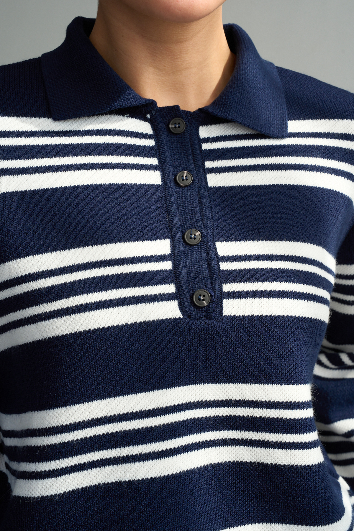 Kadın Lacivert Polo Yaka Çizgili Basic Kazak Kadın Lacivert Polo Yaka Çizgili Basic Kazak TK251115 Standart